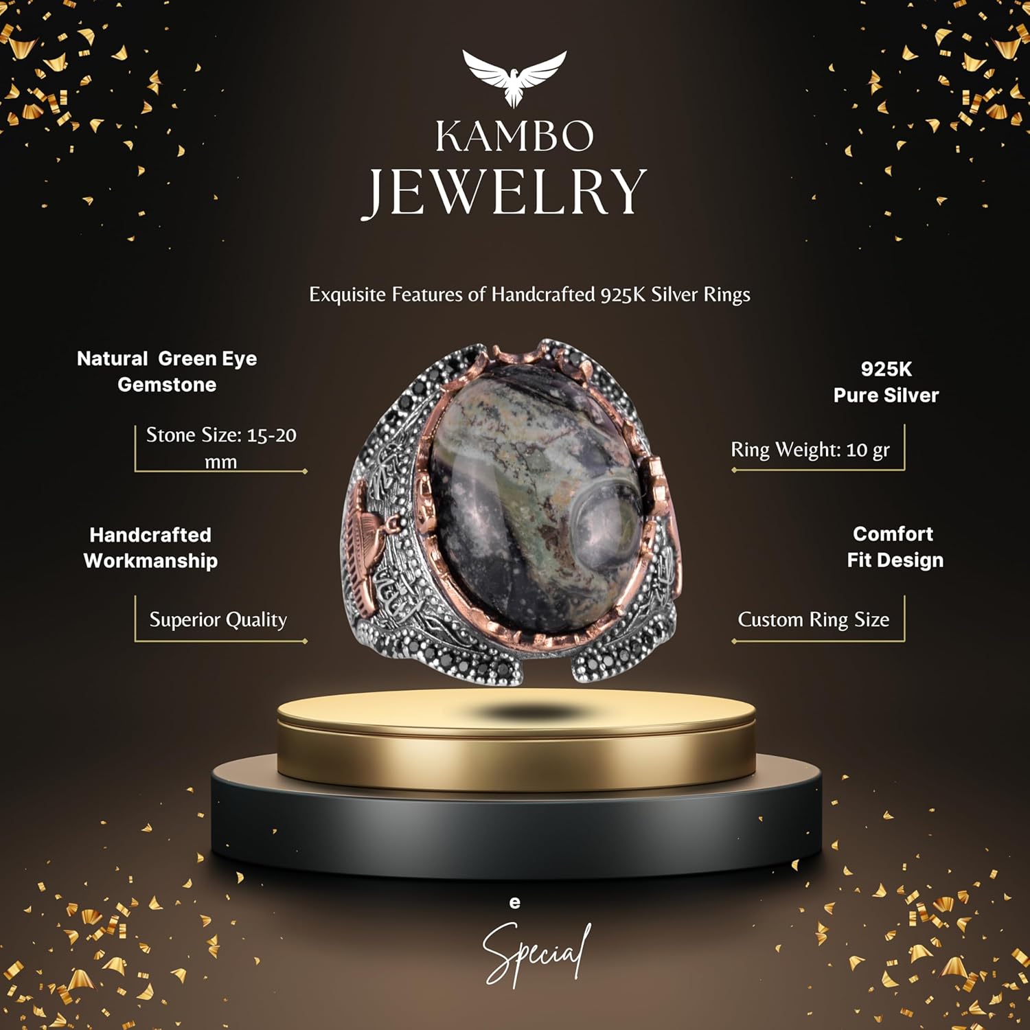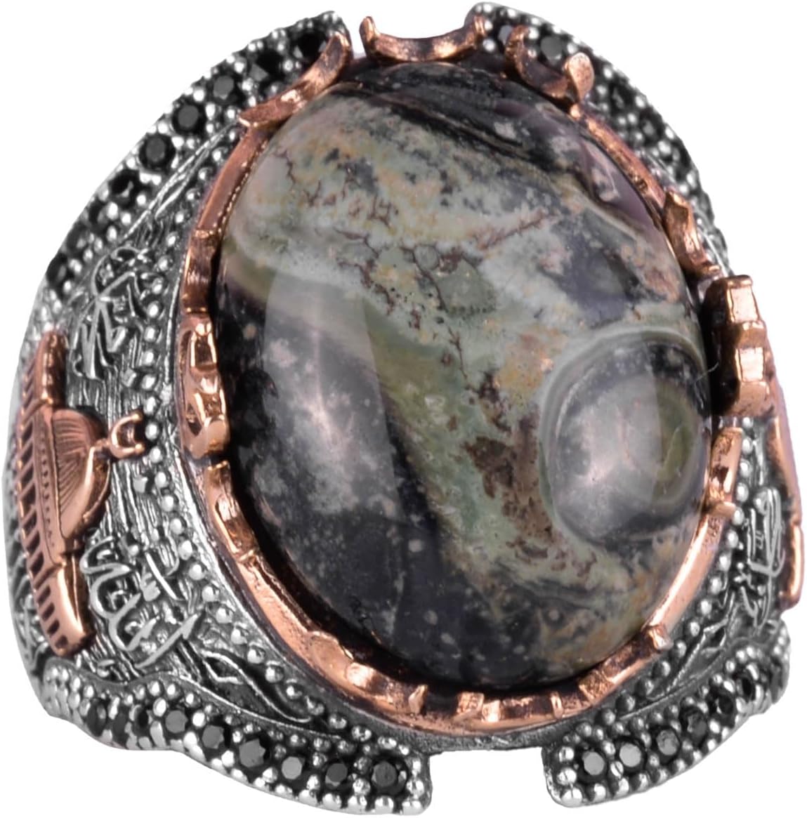 Doğal Göz Taşlı Yüzük - Canlı 925 Ayar Katı Gümüş Erkek Yüzüğü