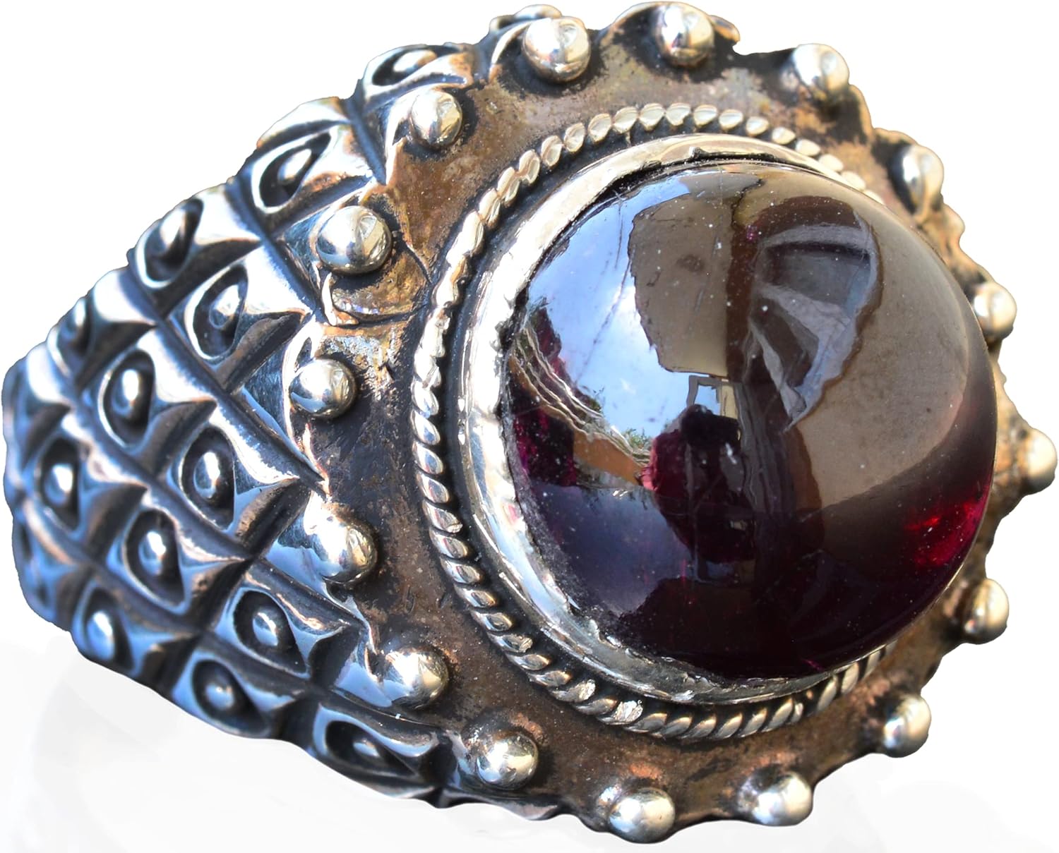 Doğal Granat Taşlı Gümüş Erkek Yüzük