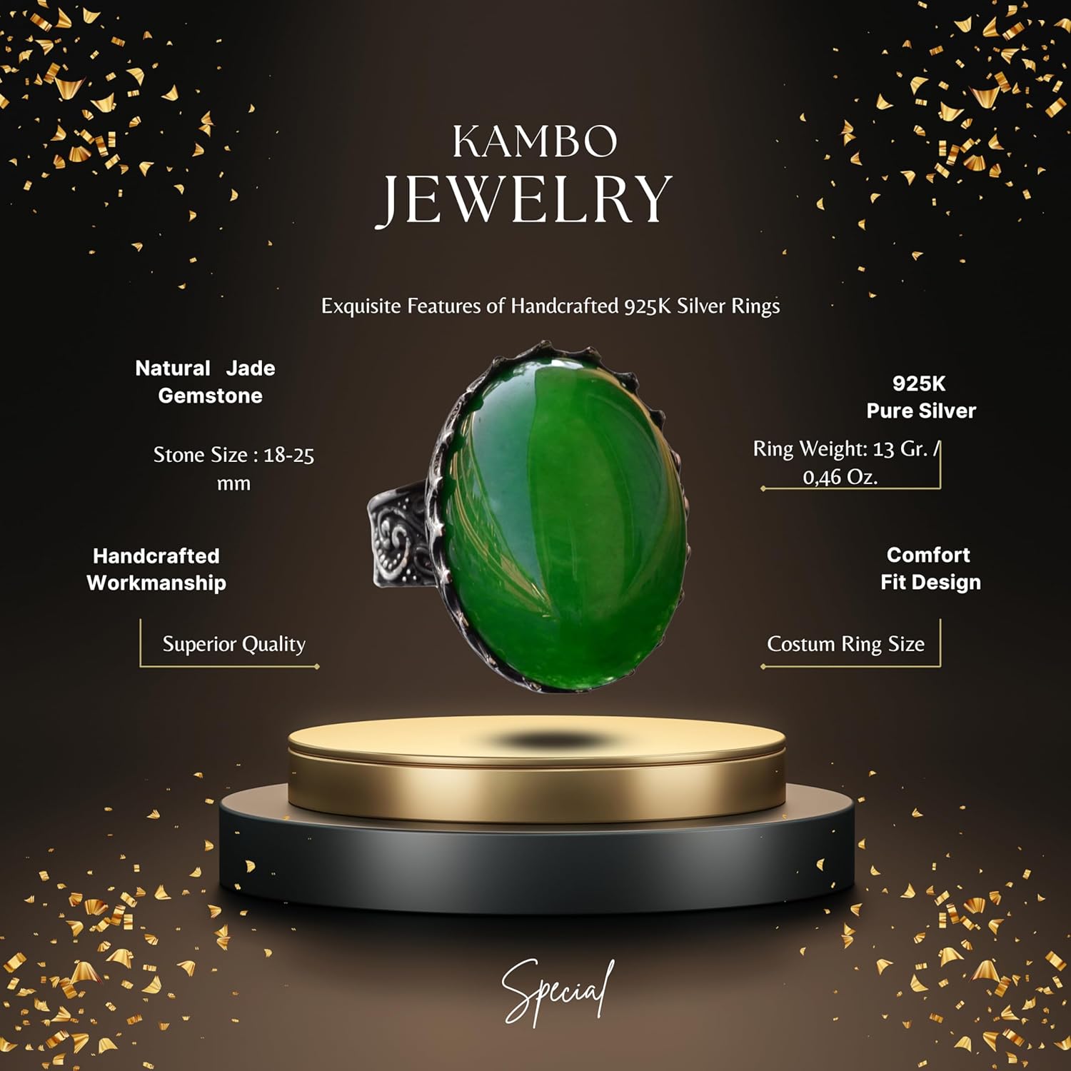 Doğal İhtişam Koleksiyonu: 925 Ayar Gümüş Erkek Yüzükleri ile Gerçek Taşlar - Zamansız Zarafet (Jade Taşı)