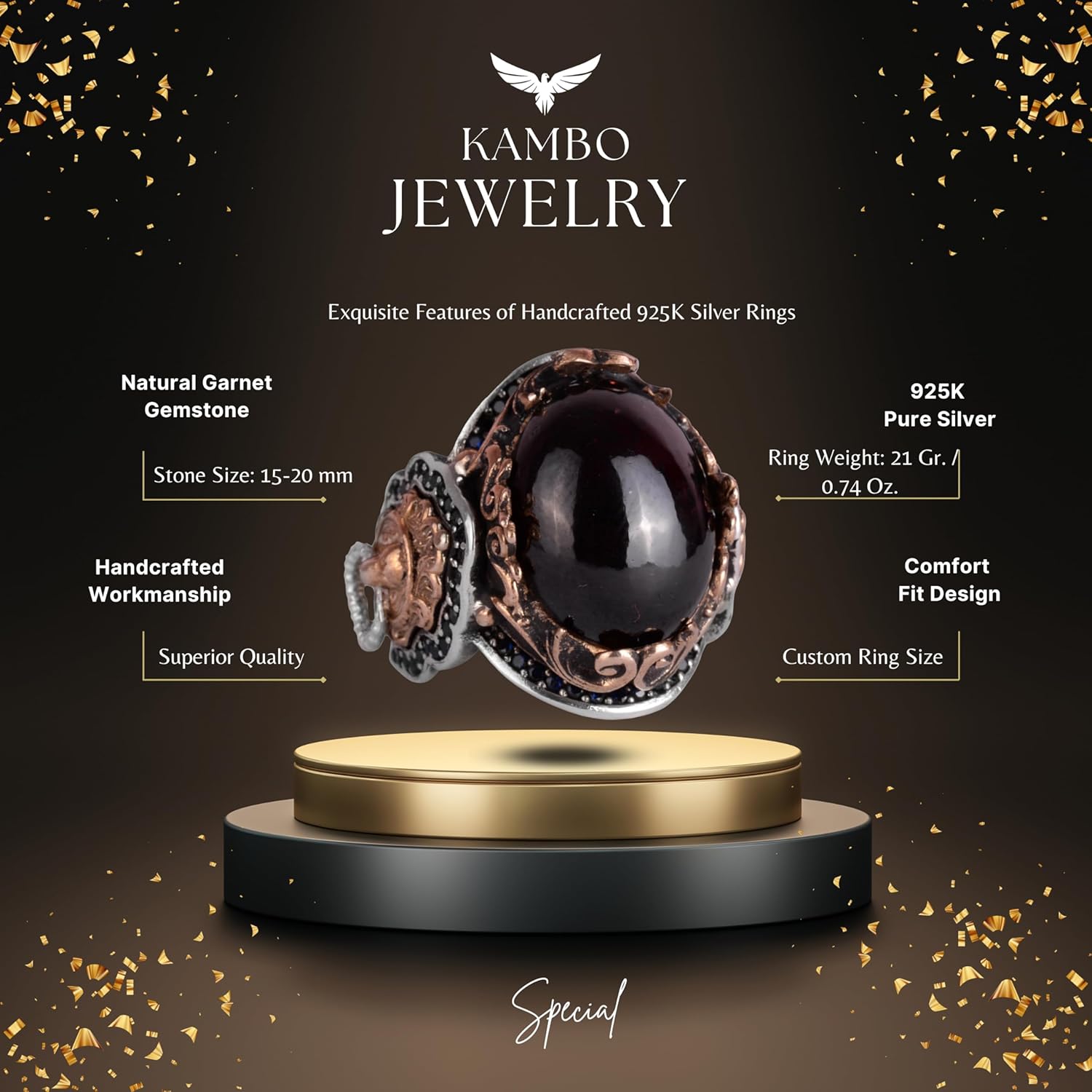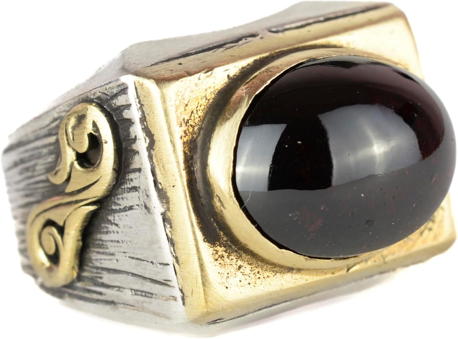 Doğal Granat Taşlı Yüzük, Hayvan Gümüş Yüzük - Derin 925K Katı Gümüş Erkek Yüzüğü