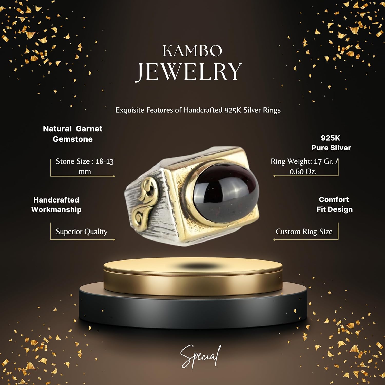 Doğal Granat Taşlı Yüzük - 925 Ayar Gümüş Erkek Yüzüğü