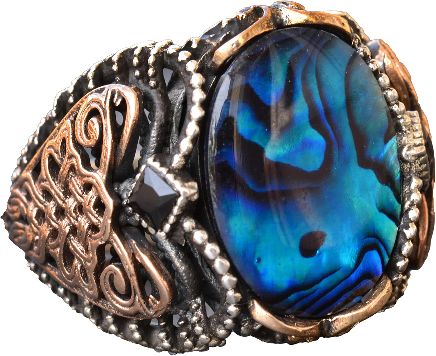 Doğal Gümüş Erkek Yüzük, Gökkuşağı Taşlı Yüzük, Çok Renkli Yüzük, 925 Ayar Gümüş Erkek Yüzük
