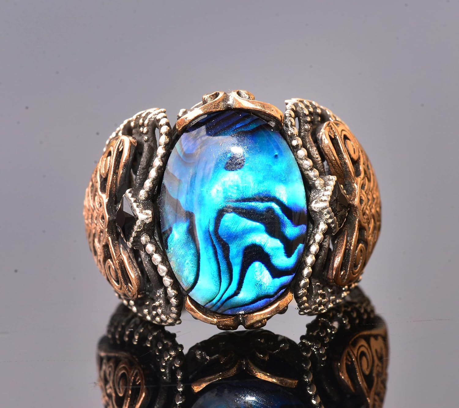 Doğal İnci Renkli Taş Yüzük, Gümüş Yüzük Erkekler İçin, Doğum Taşı Yüzüğü Erkekler İçin