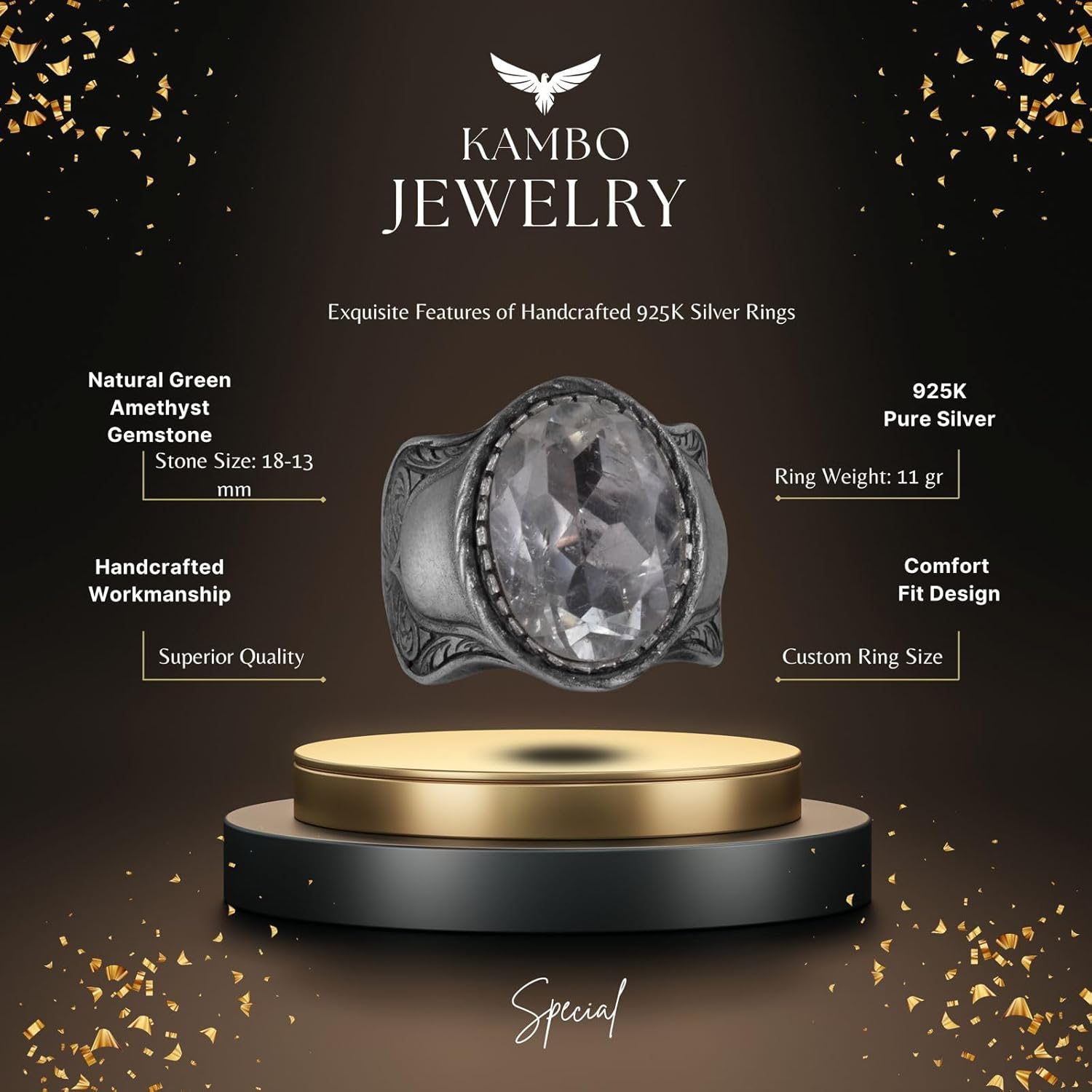 Doğal Taş Yüzük, 925 Ayar Gümüş Yüzük, (Yeşil Ametist)