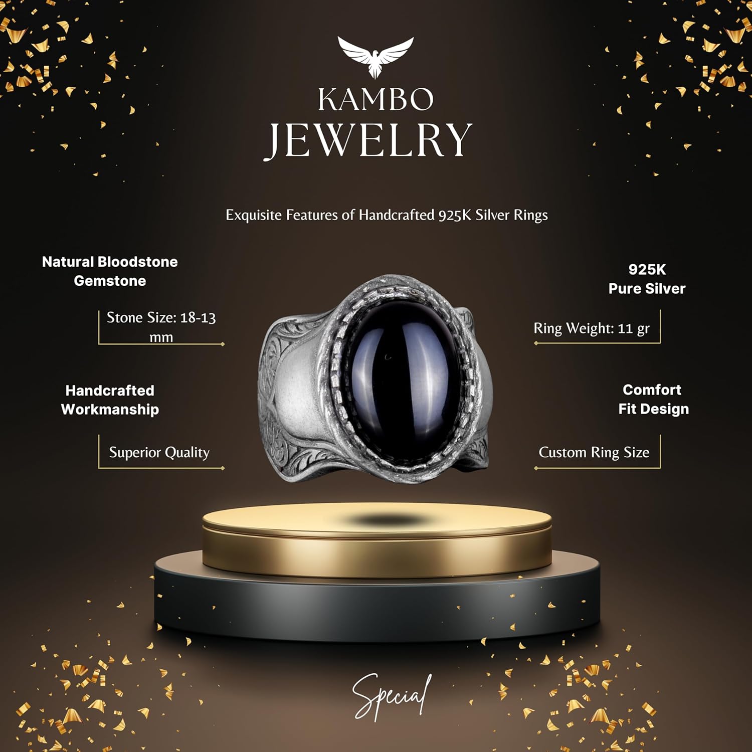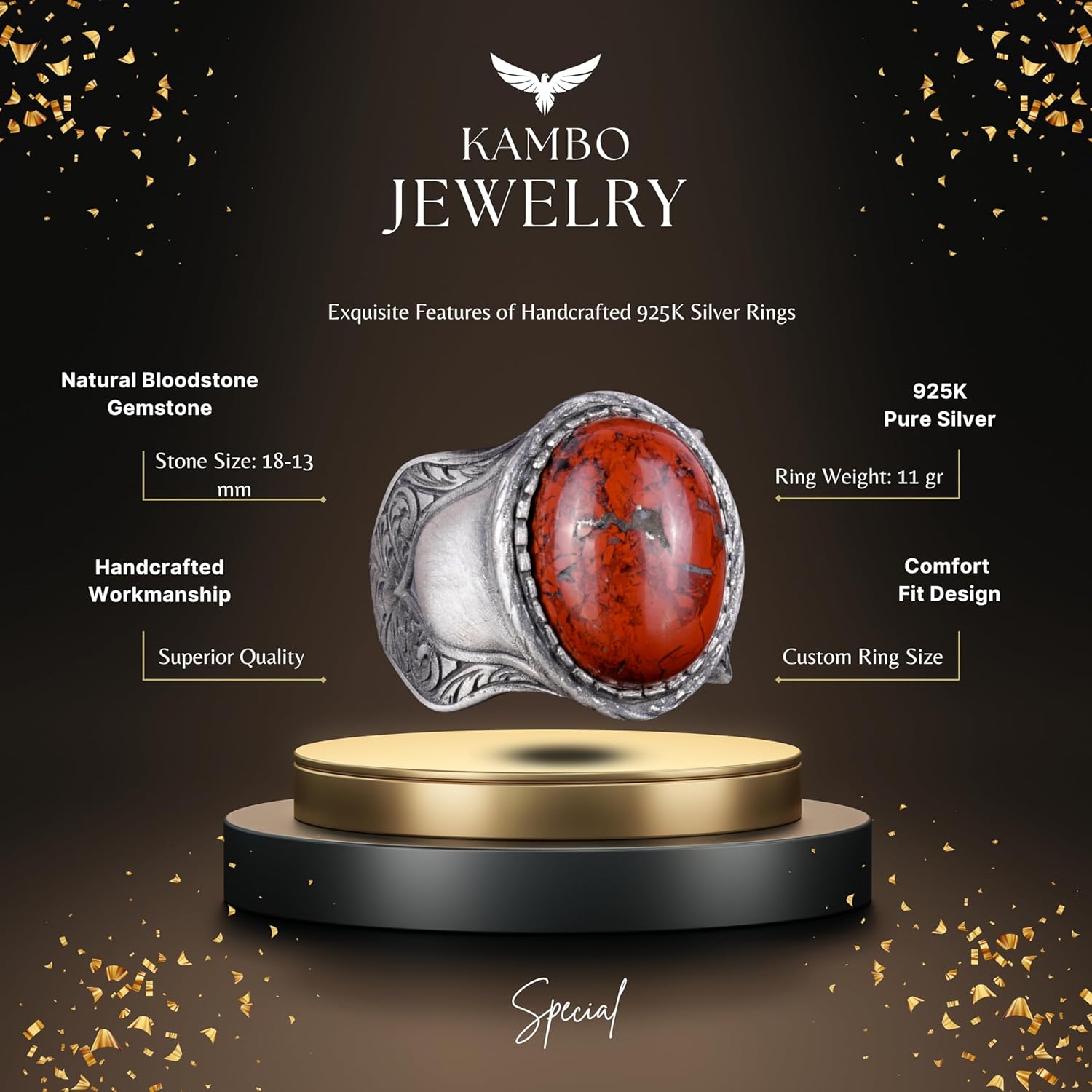 Doğal Taş Yüzük, 925 Ayar Gümüş Yüzük, (Kan Taşı)