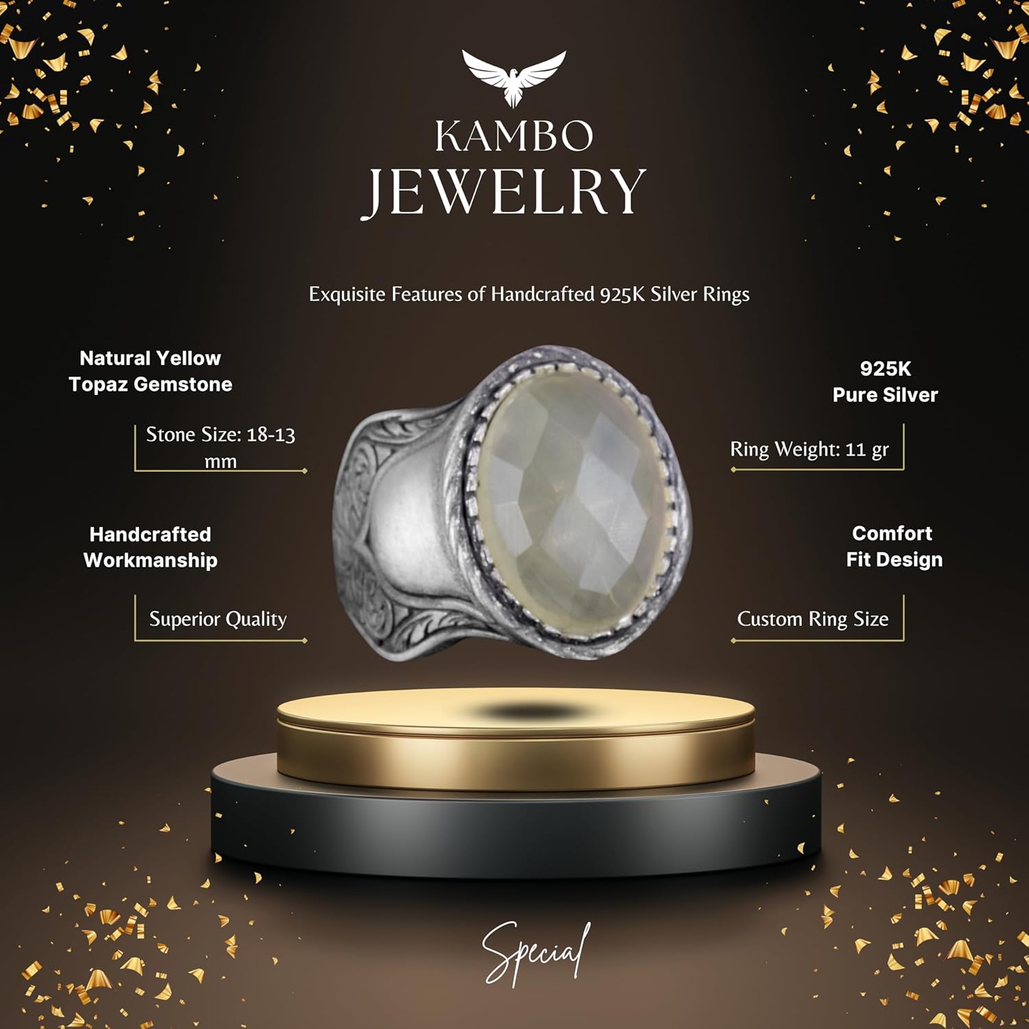 Doğal Taş Yüzük, 925 Ayar Gümüş Yüzük, (Limon Topaz)