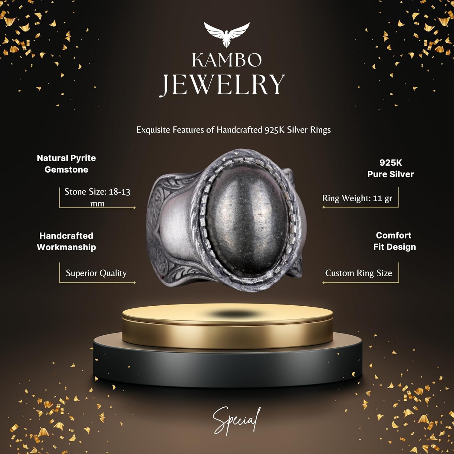 Doğal Taş Yüzük, 925 Ayar Gümüş Yüzük, (pirita)