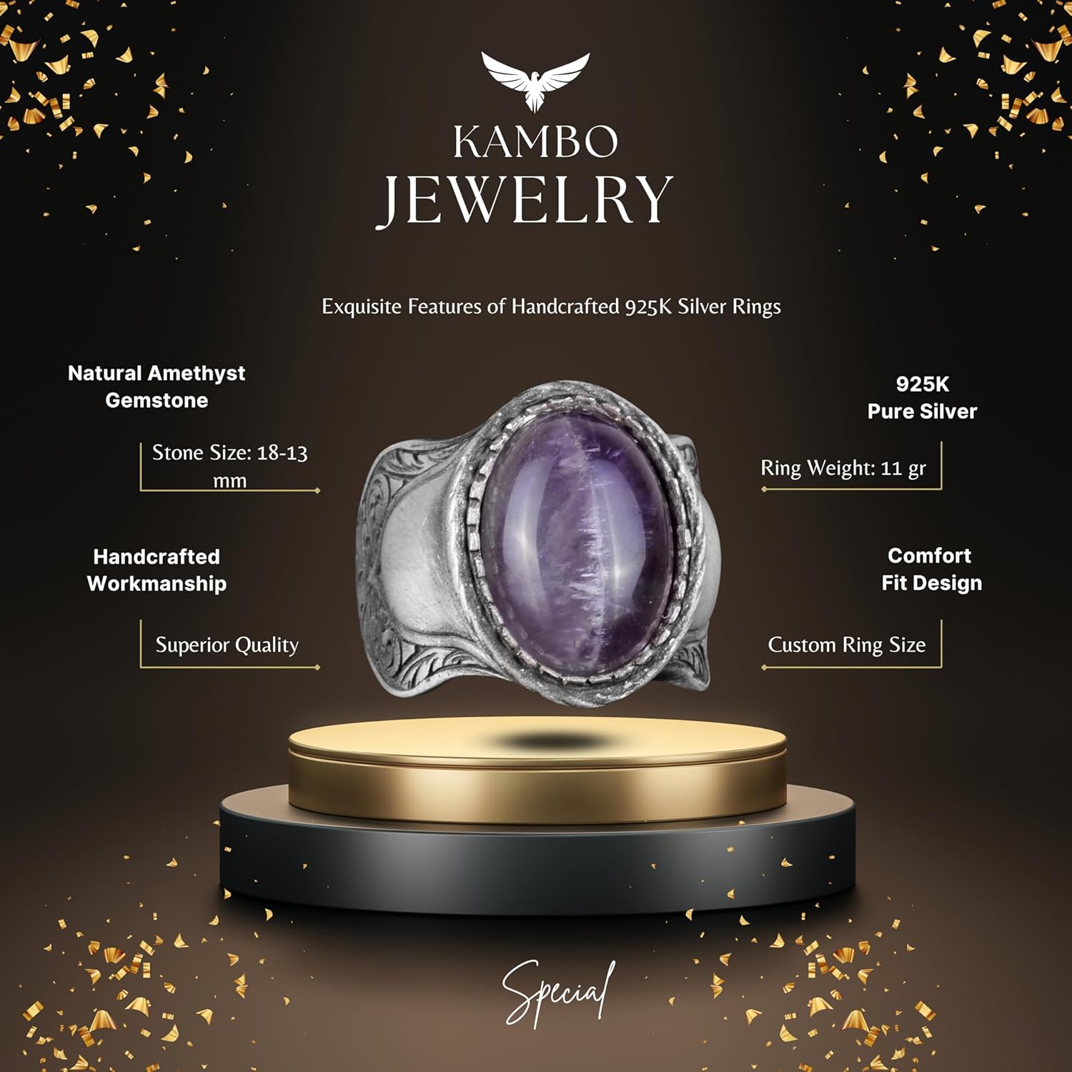 Doğal Taş Yüzük, 925 Ayar Gümüş Yüzük, Amethyst