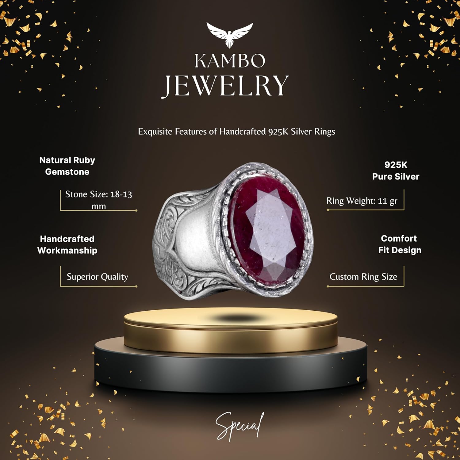 Doğal Taş Yüzük, 925 Ayar Gümüş Yüzük, (Yakut)