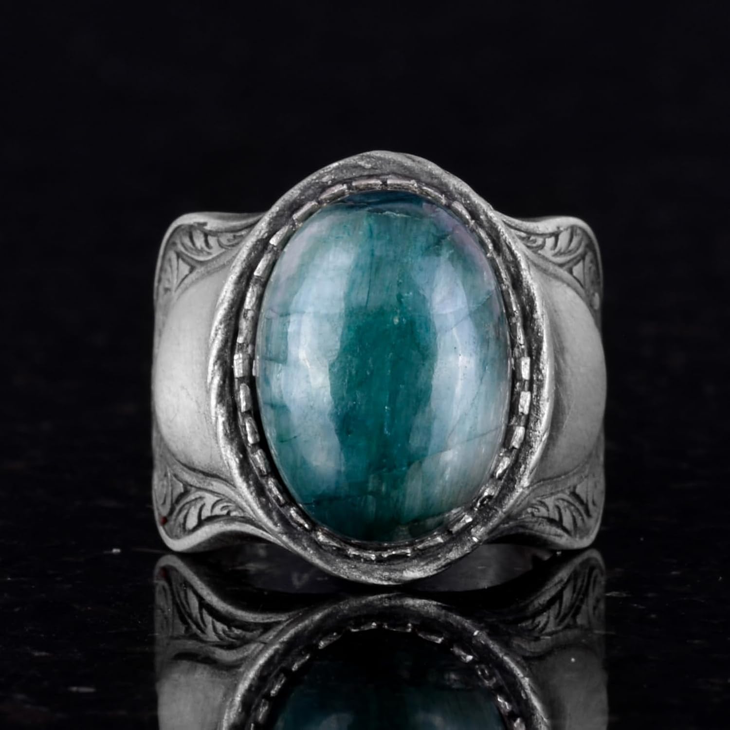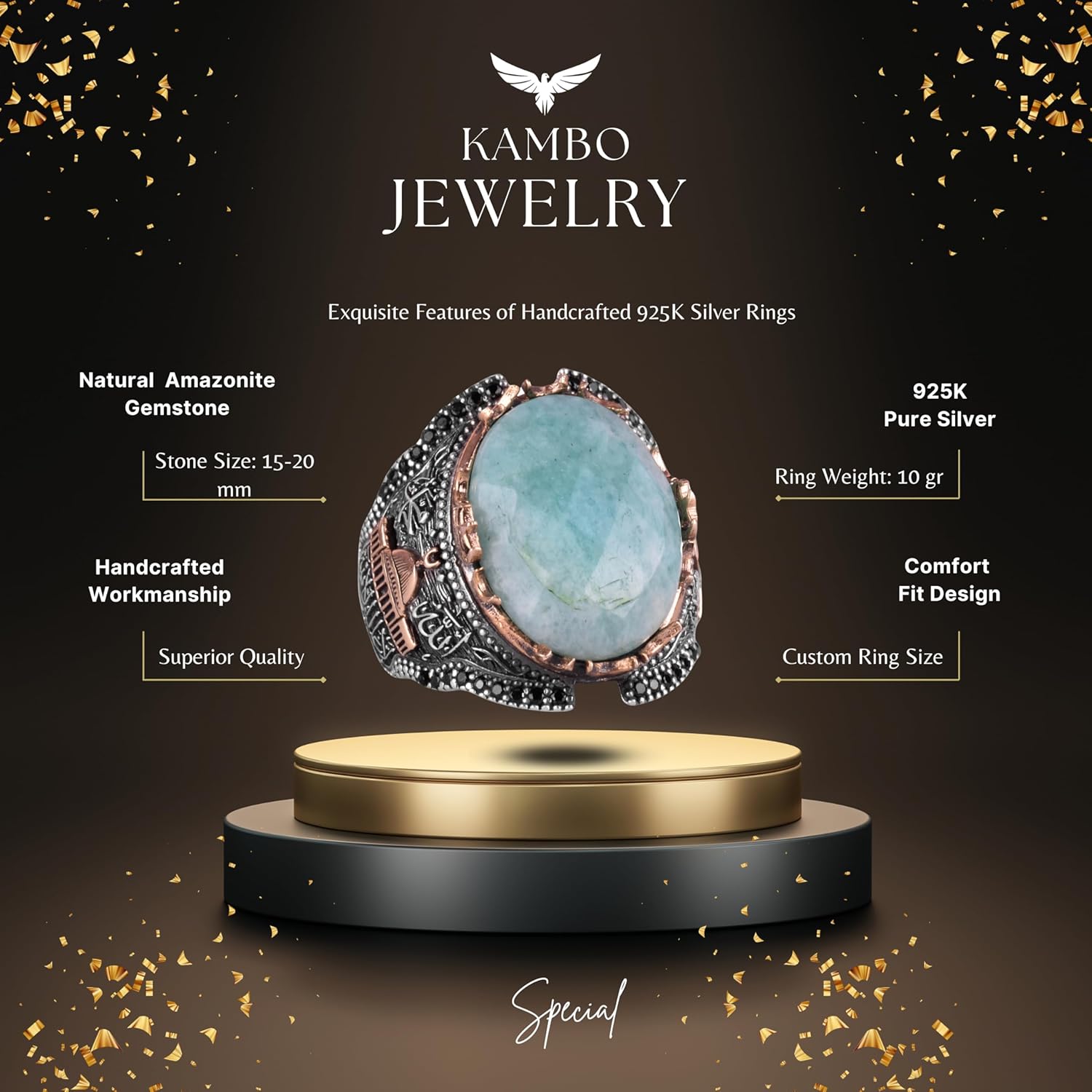 Doğal Taş Yüzük, 925 Ayar Gümüş Yüzük, Erkekler İçin Yüzük (Amazonit)