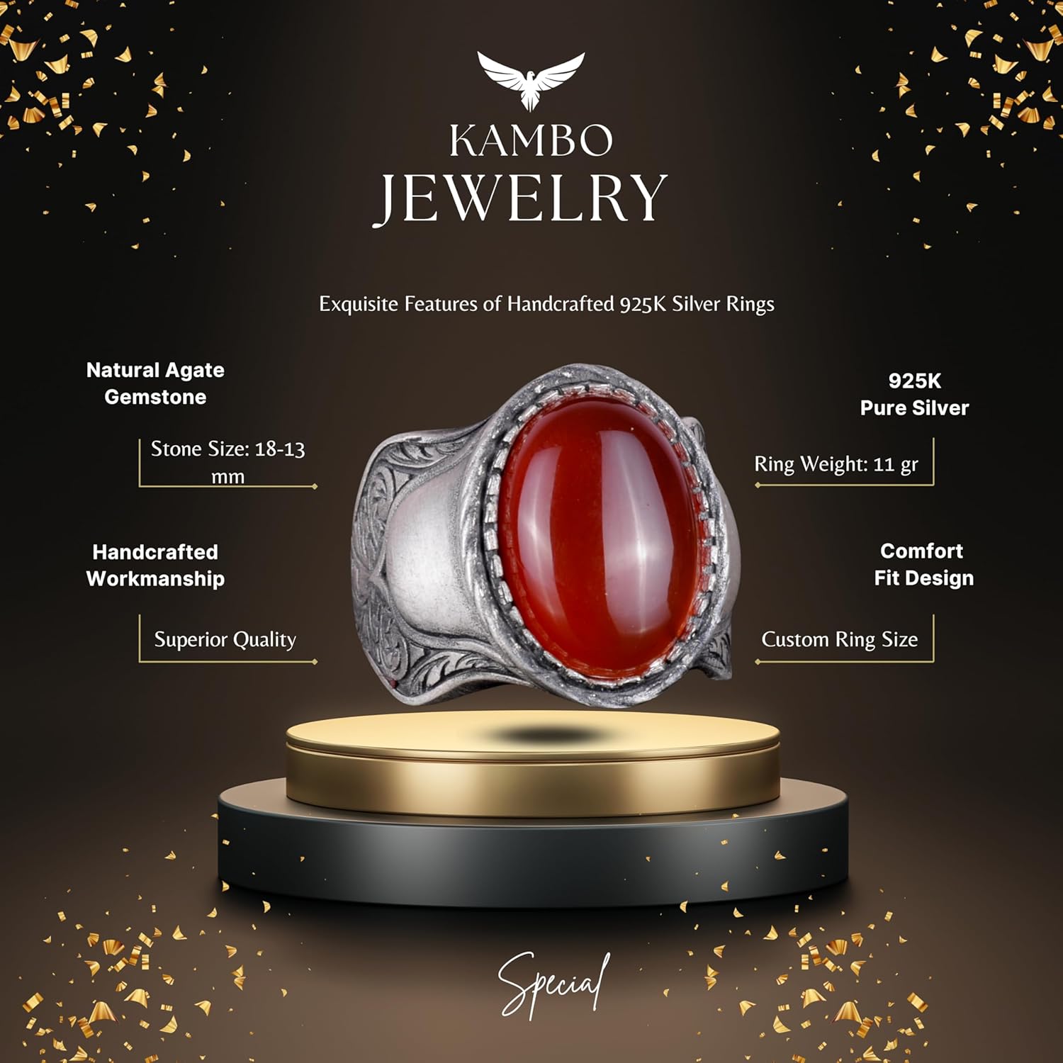 Doğal Taş Yüzük, 925 Ayar Gümüş Yüzük, Kırmızı Akik