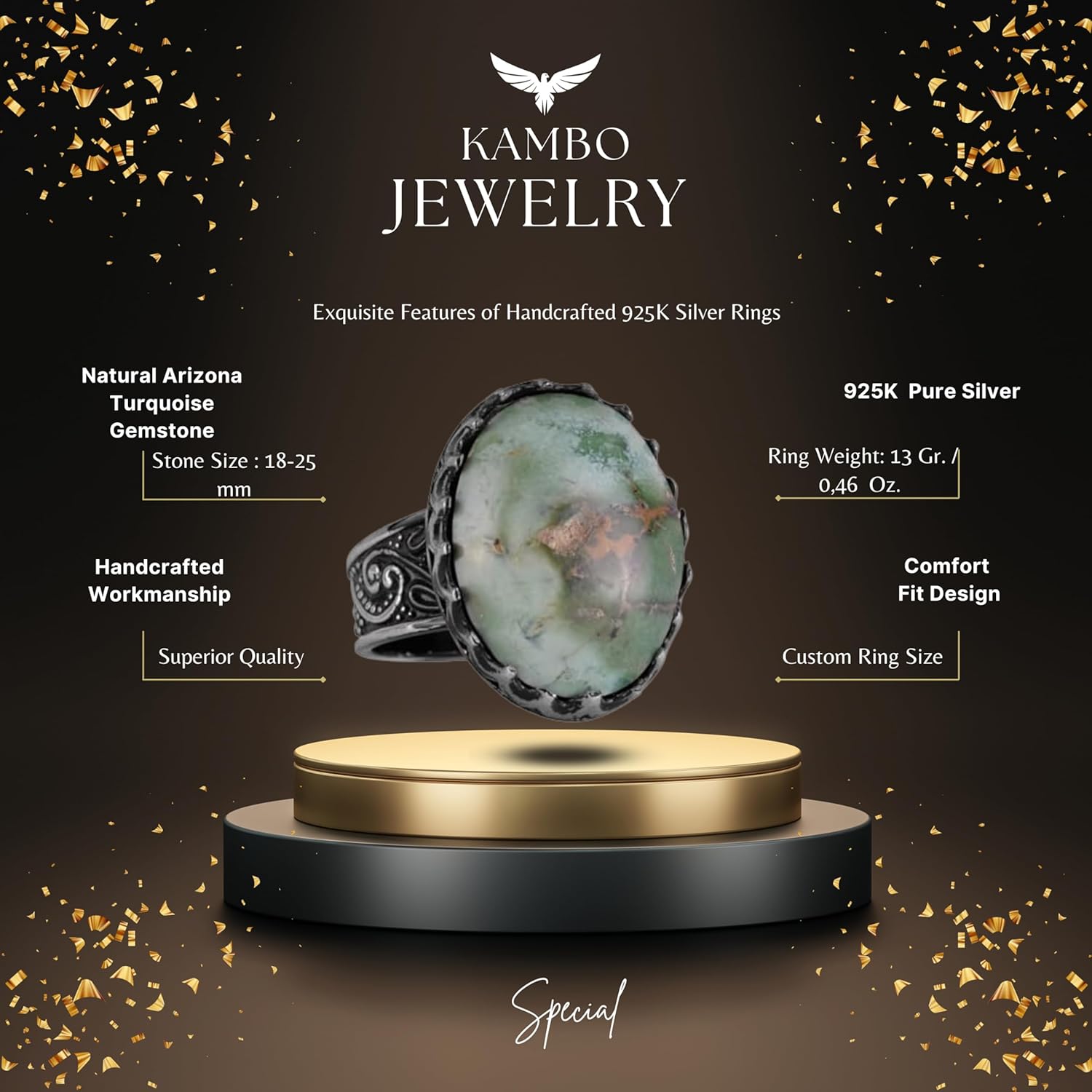 Doğal Turkuaz Erkek Yüzük - El Yapımı 925 Ayar Gümüş Takı