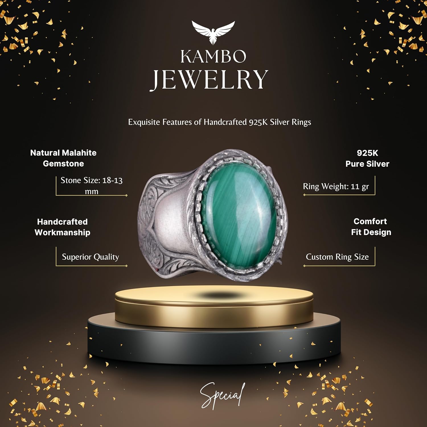 Doğal Taş Yüzük, 925 Ayar Gümüş Yüzük, Malakit