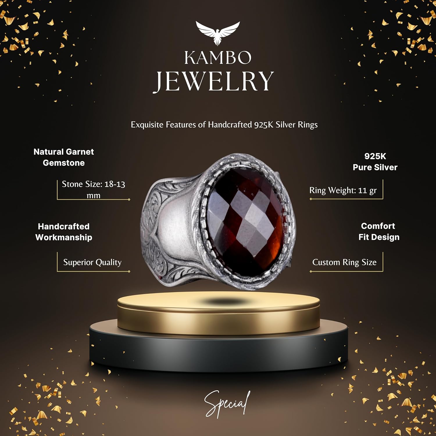 Doğal Taş Yüzük, 925 Ayar Gümüş Yüzük, Garnet
