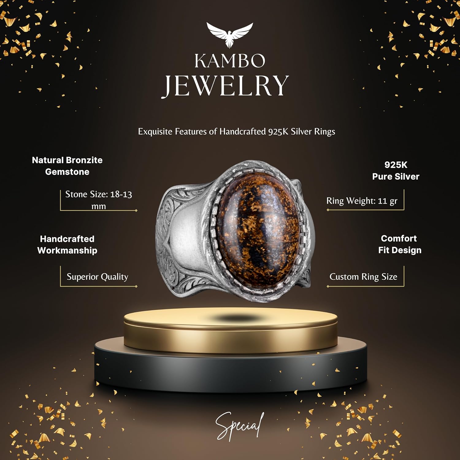 Doğal Taş Yüzük, 925 Ayar Saf Gümüş Yüzük, Bronzit