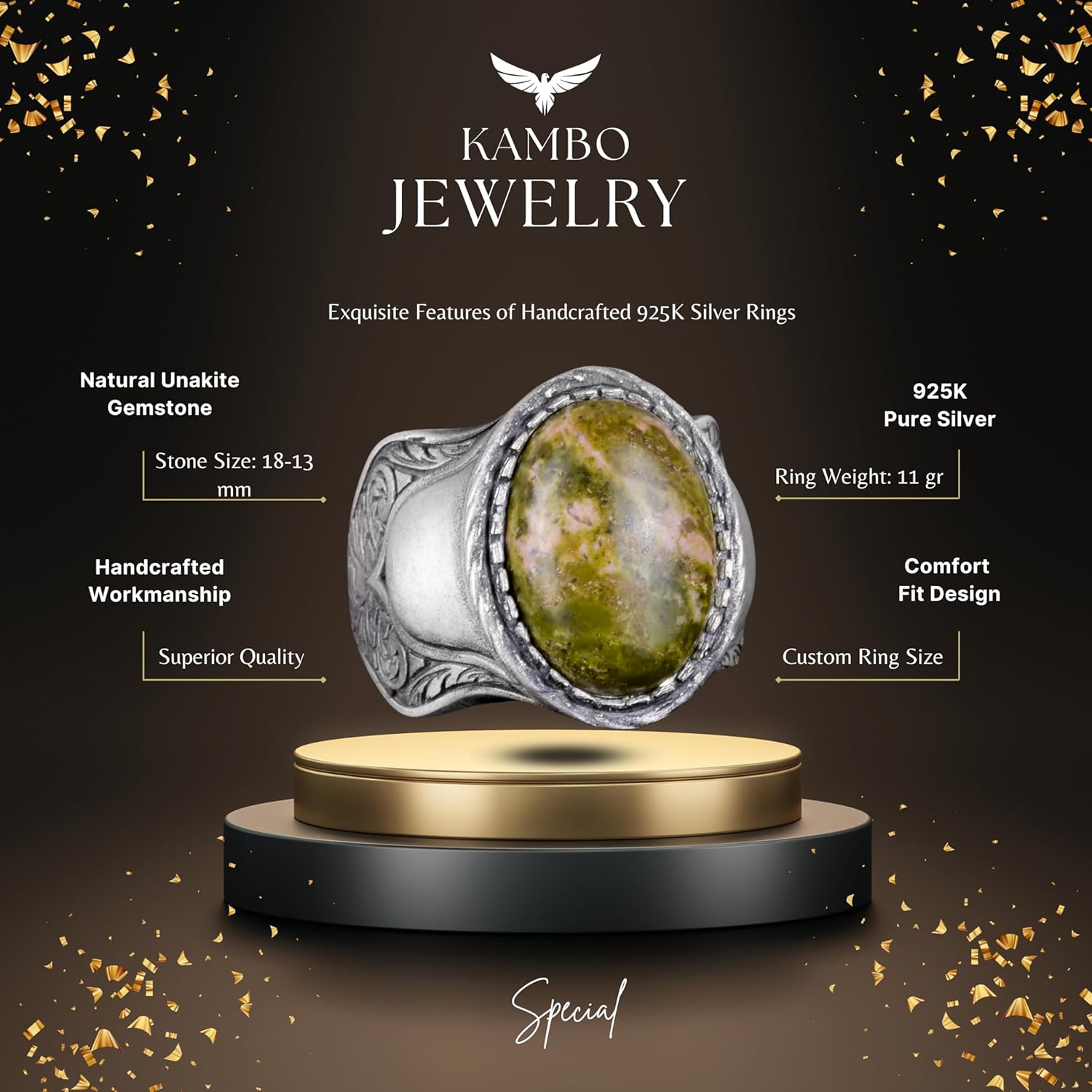 Doğal Taş Yüzük, 925 Ayar Sterling Gümüş Yüzük, Unakite