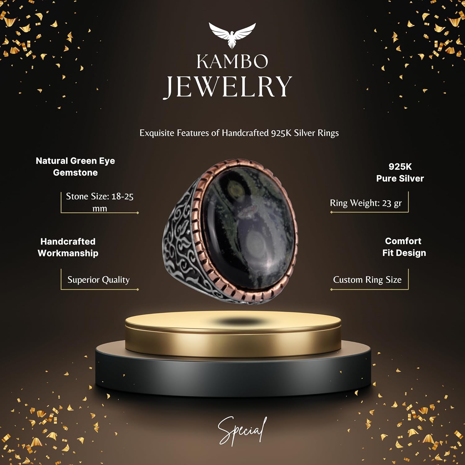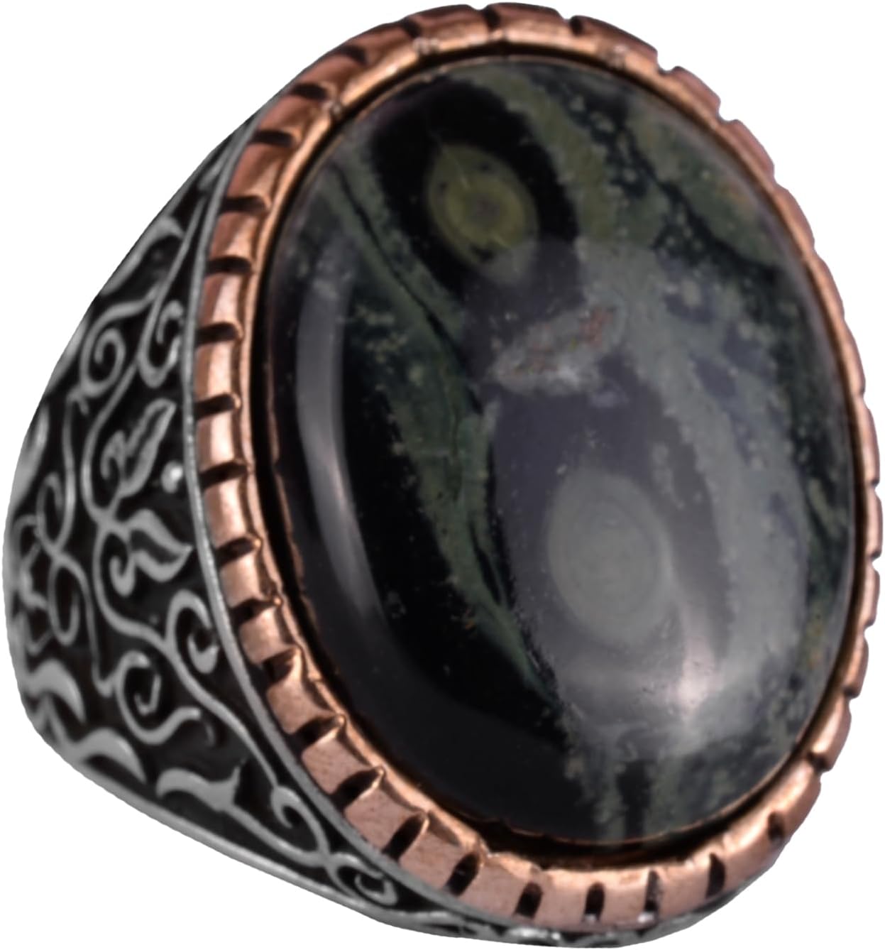 Doğal Yeşil Göz Taşı Yüzük, 925 Ayar Katı Gümüş Erkek Yüzük, Büyük Yüzük, Doğal Tasarım Gümüş Erkek Yüzük