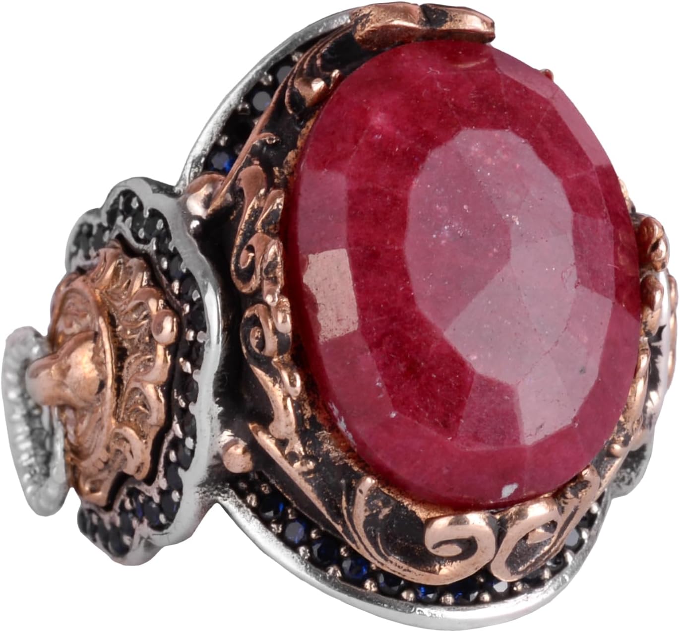 Doğal Yakut Taşlı Yüzük, Aslan Başlı Yüzük - 925 Ayar Gümüş Yüzük