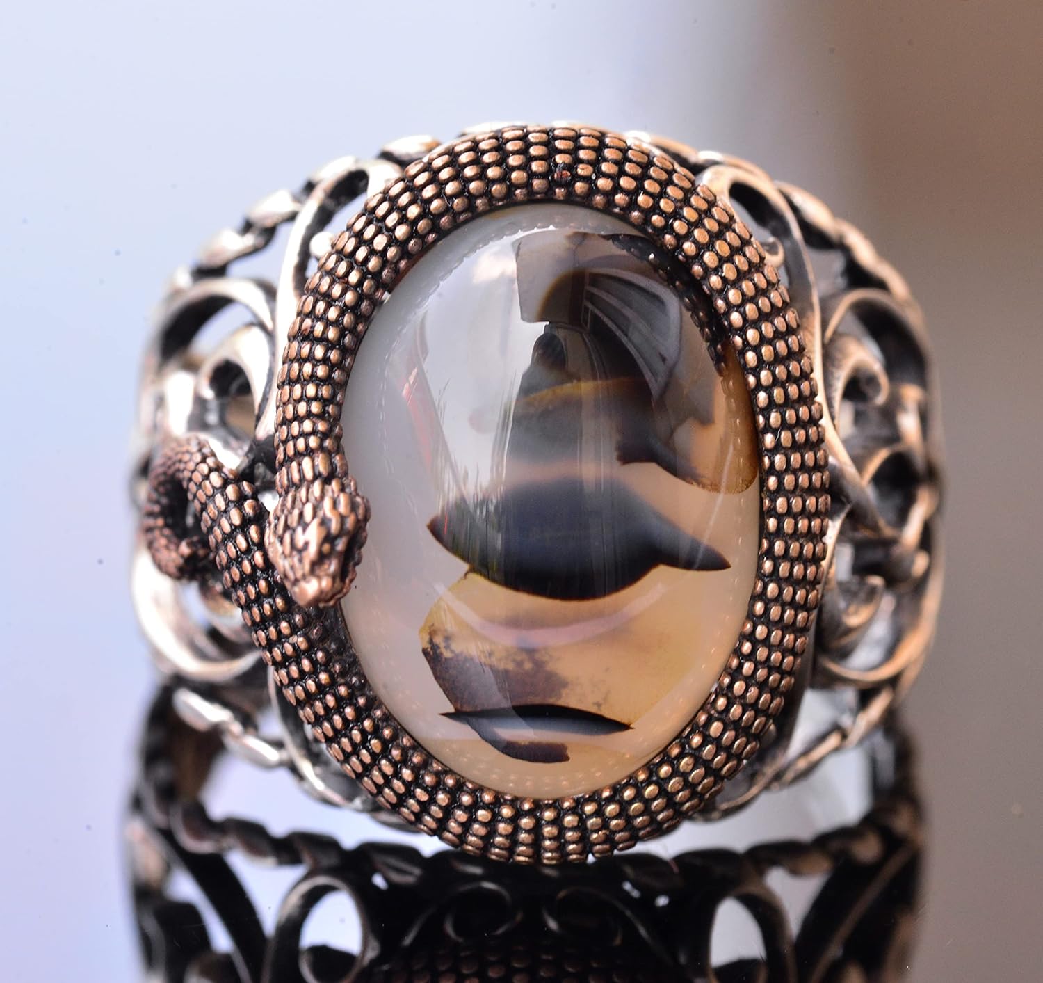 Doğal Yemen Akik Taşı, Yılan Yüzük, El Yapımı Yüzük, Gümüş Erkek Yüzüğü, Onun İçin Hediye, Gümüş Aksesuar Kahverengi
