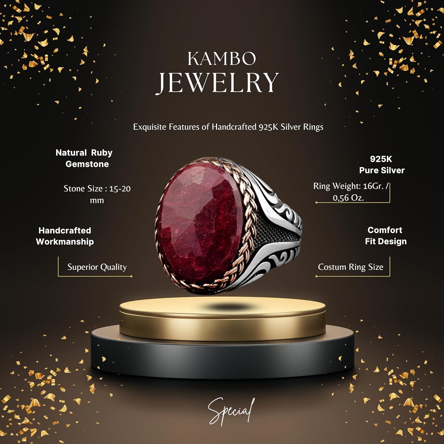 Doğal Yakut Taşlı Yüzük, 925 Ayar Sert Gümüş Yüzük Erkekler İçin, Farklı Yüzük