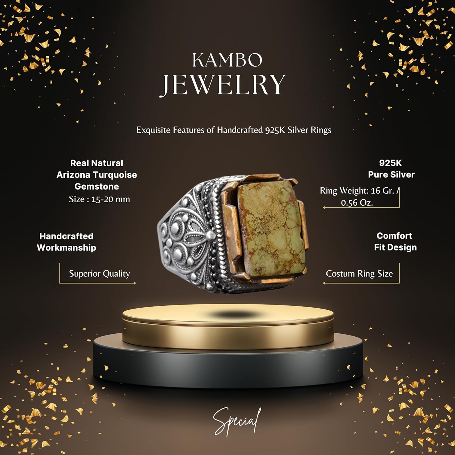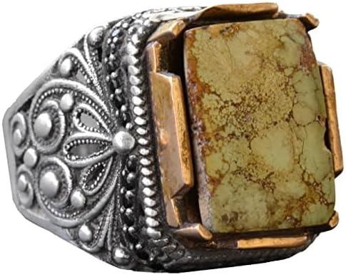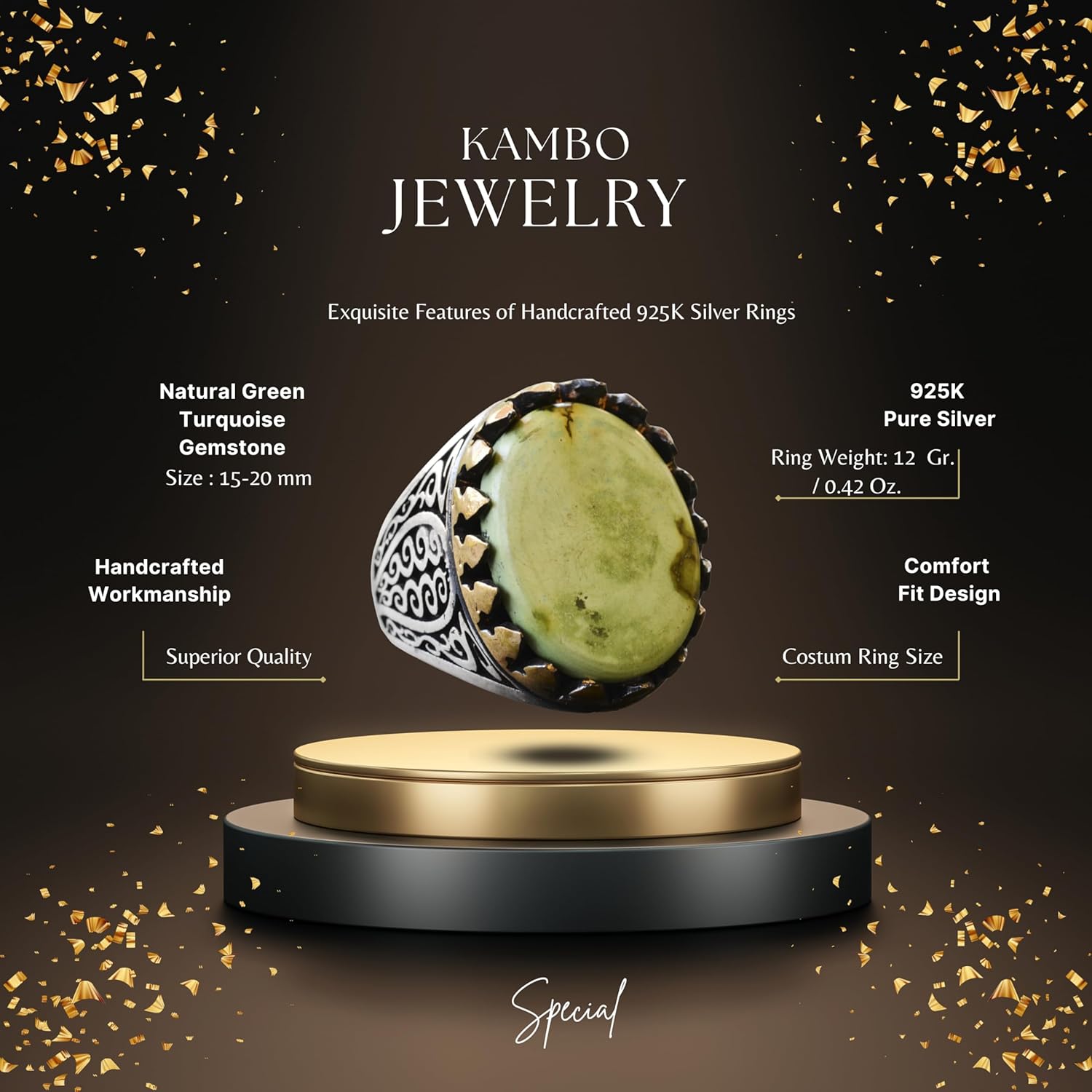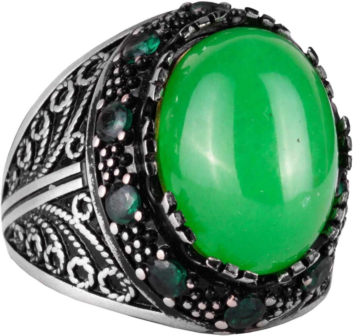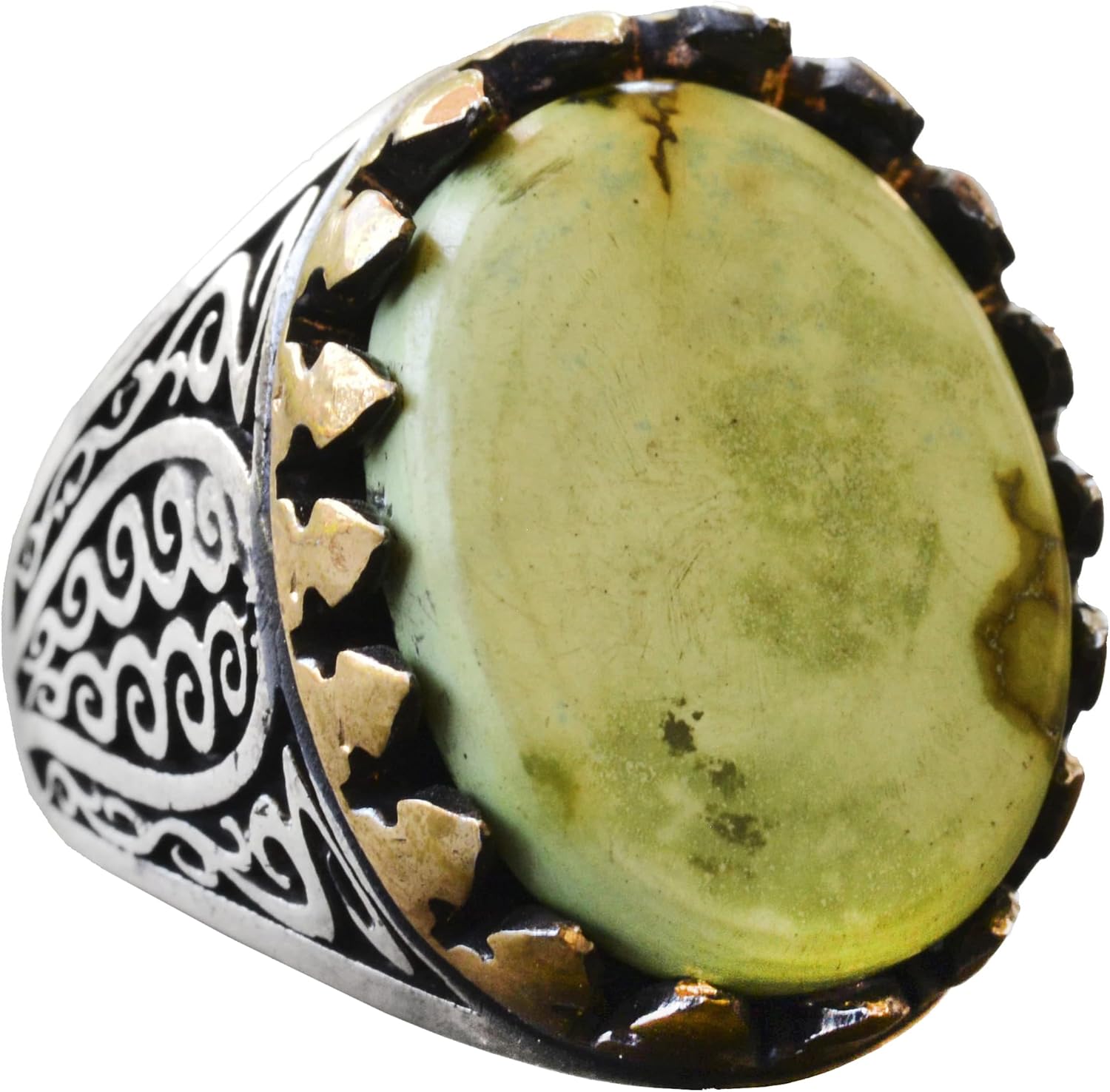 Doğal Yeşil Turkuaz Taş Yüzük Erkekler için, Gümüş Turkuaz Yüzük, 925 Ayar Gümüş Erkek Yüzüğü, Büyük Yüzük