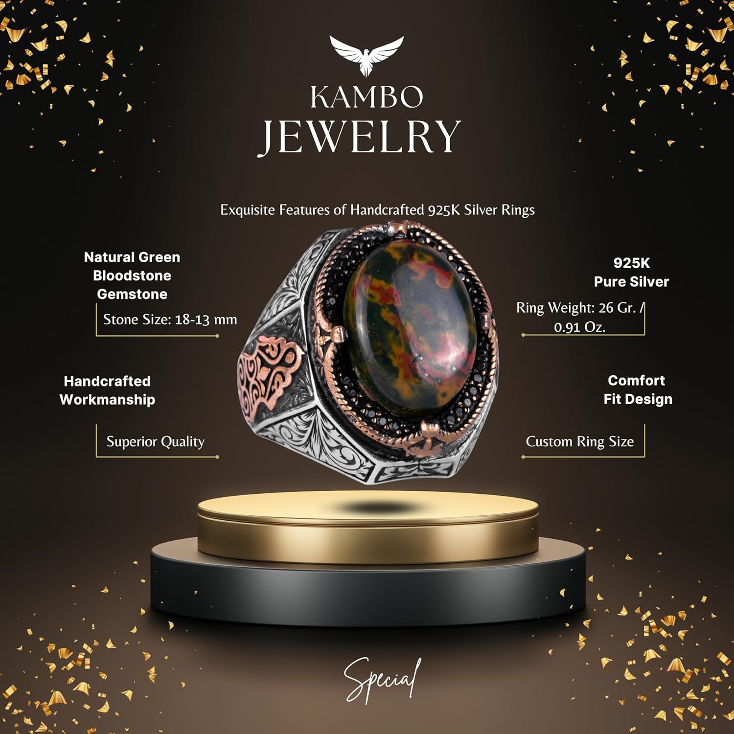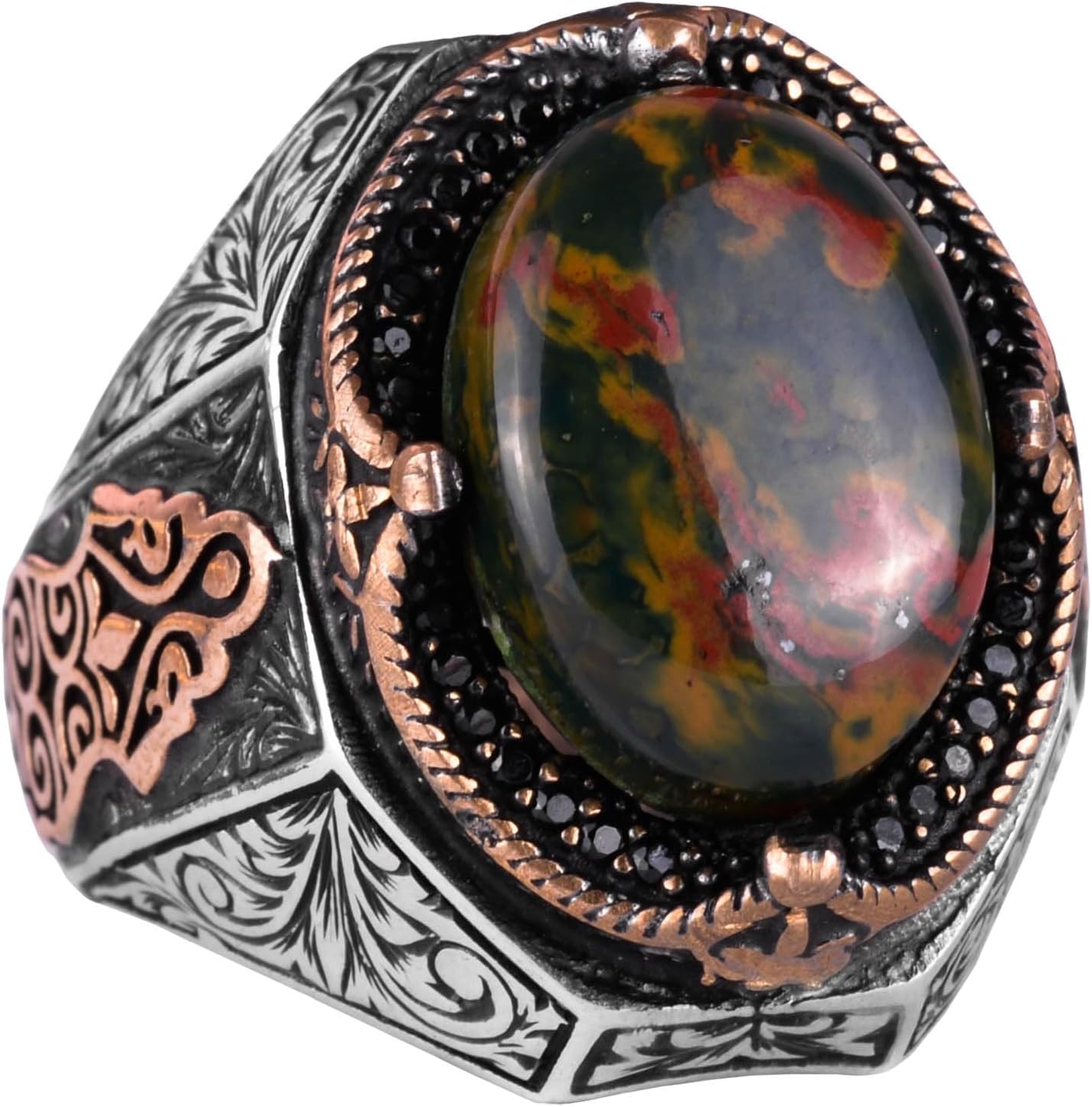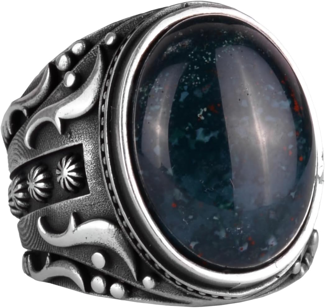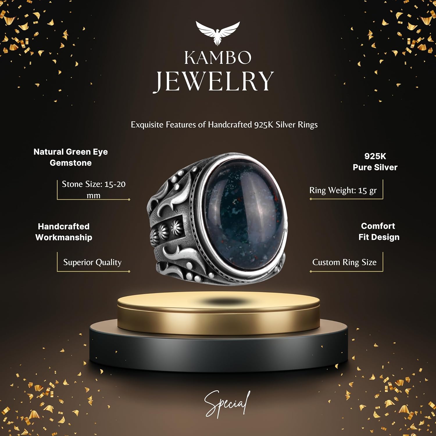 Doğal Yeşil Kan Taşı Yüzük - 925 Ayar Sterling Gümüş Yüzük Erkekler İçin, Farklı Yüzük