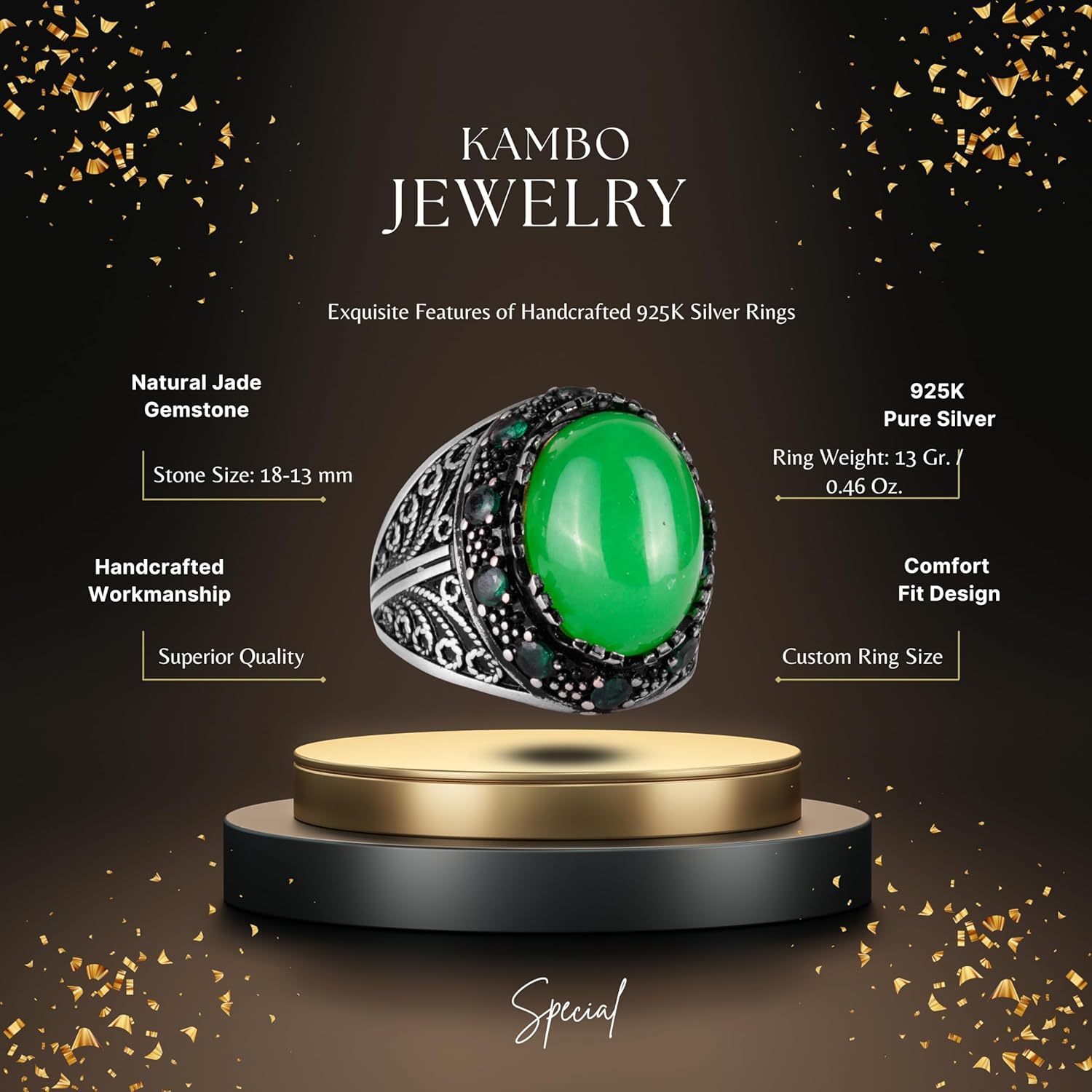 Doğal Yeşim Taşı Yüzük - El Yapımı 925 Ayar Gümüş Erkek Şık Takı