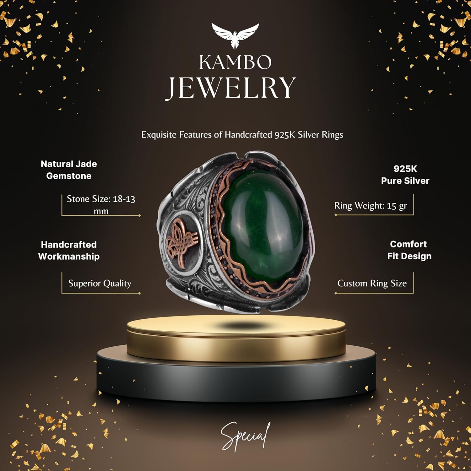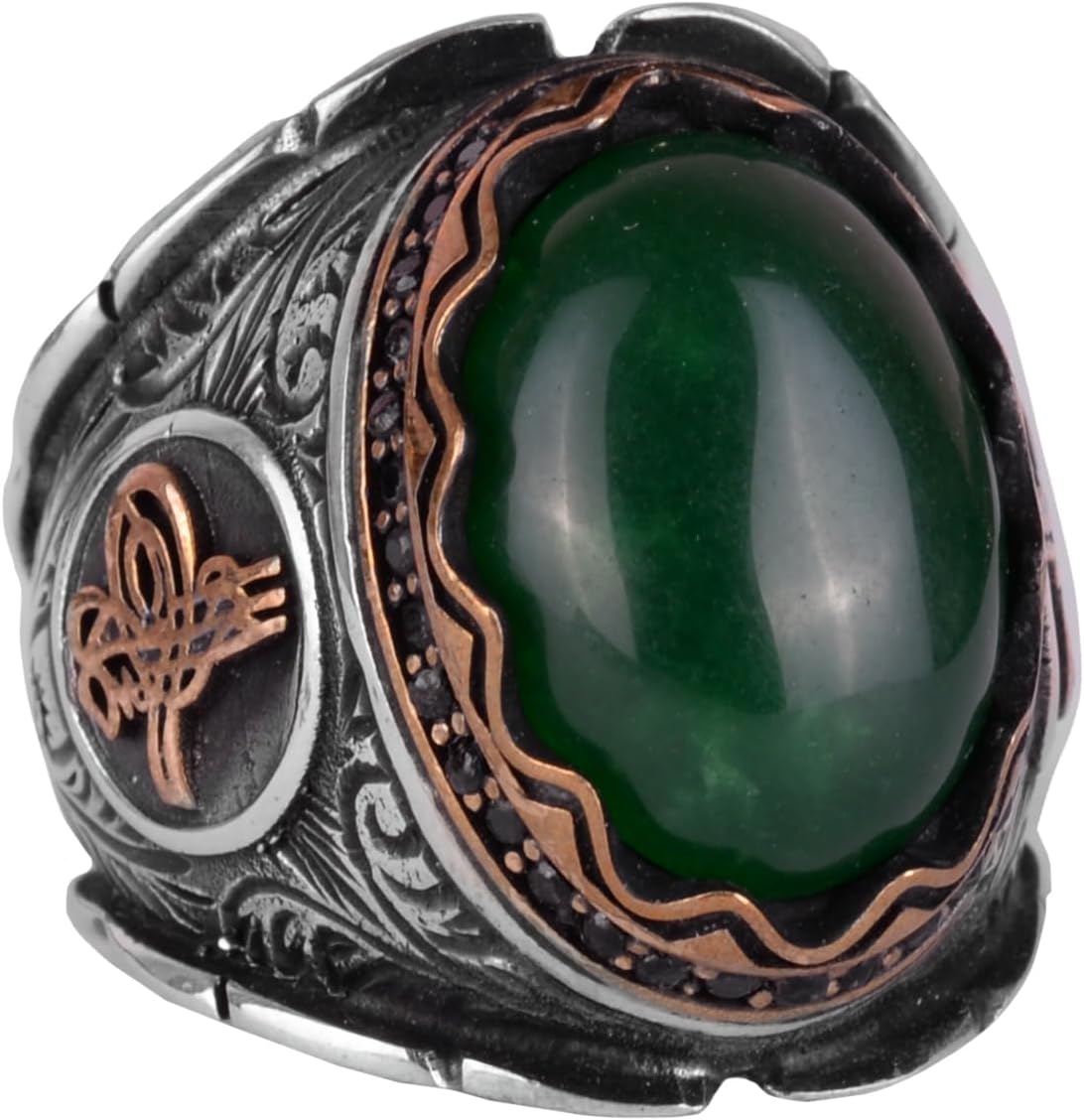 Doğal Yeşim Taşı Yüzük, Osmanlı Tuğrası Gümüş Yüzük, Şifa Veren 925 Ayar Katı Gümüş Erkek Yüzük, Huzur ve İçgörü Tasarımı