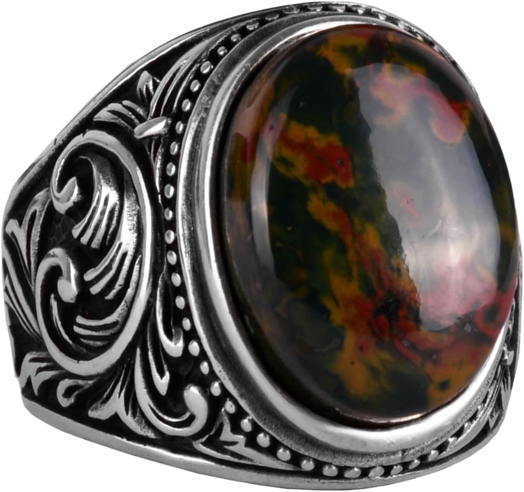 Doğal Yeşil Kan Taşı Taş Yüzük - 925 Ayar Gümüş Yüzük Erkekler İçin, Farklı Yüzük