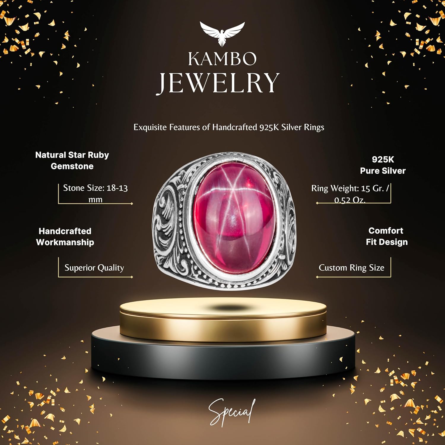 Doğal Yıldız Yakut Taşlı Yüzük - 925 Ayar Katı Gümüş Yüzük Erkekler İçin, Farklı Yüzük