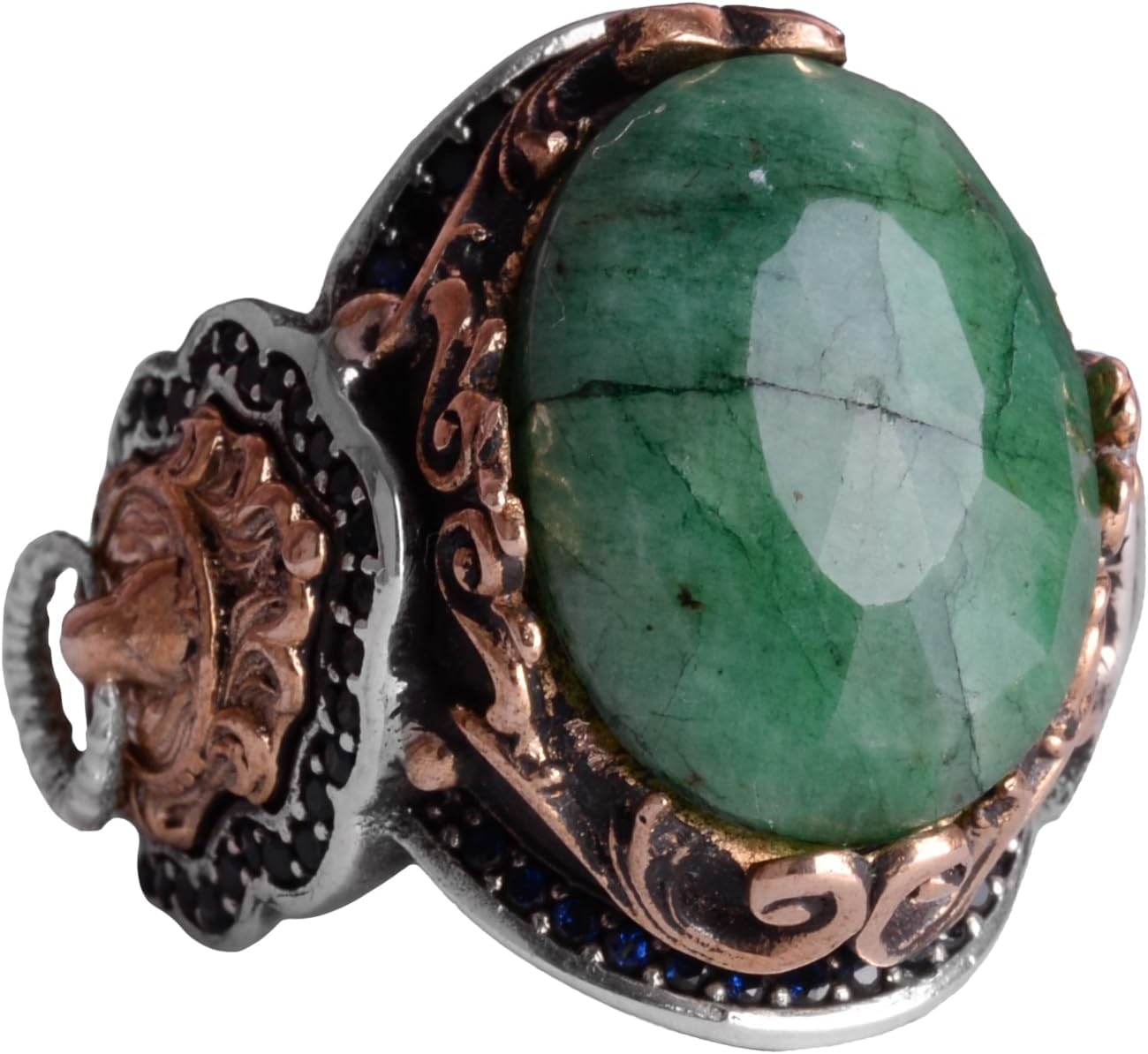 Doğal Zümrüt Taşlı Yüzük, Aslan Sinyal Yüzüğü - 925 Ayar Katkısız Gümüş Yüzük