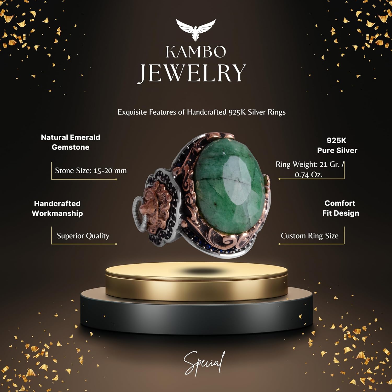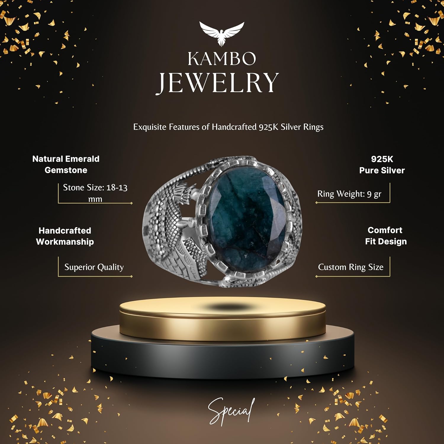 Doğal Zümrüt Taşlı, El Yapımı Yüzük, Sterlin Gümüş Erkek Yüzüğü, Gümüş Aksesuar, Yeşil