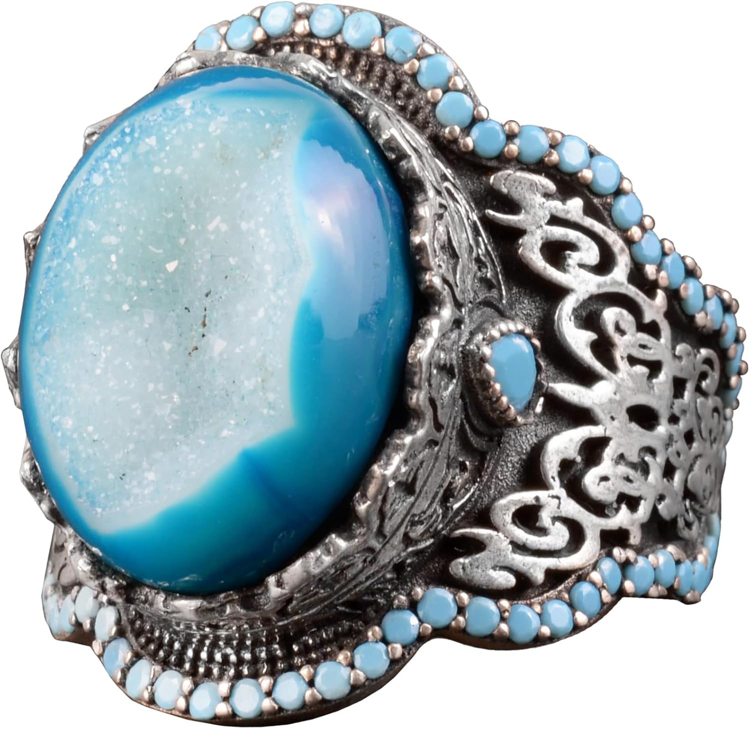 Drusy Kuvars ile Gümüş Erkek Yüzük - Parlak Taş Koleksiyonu