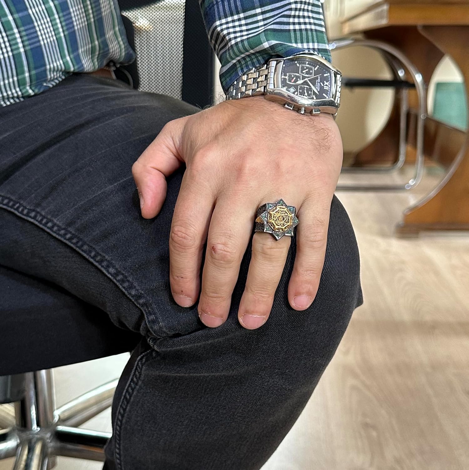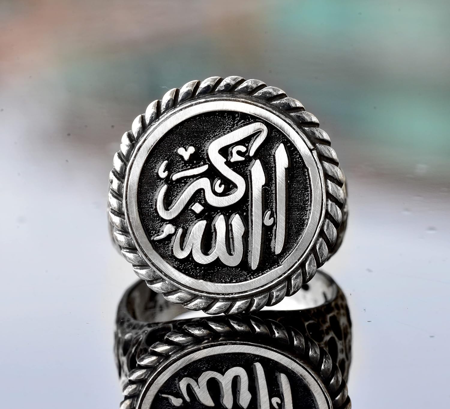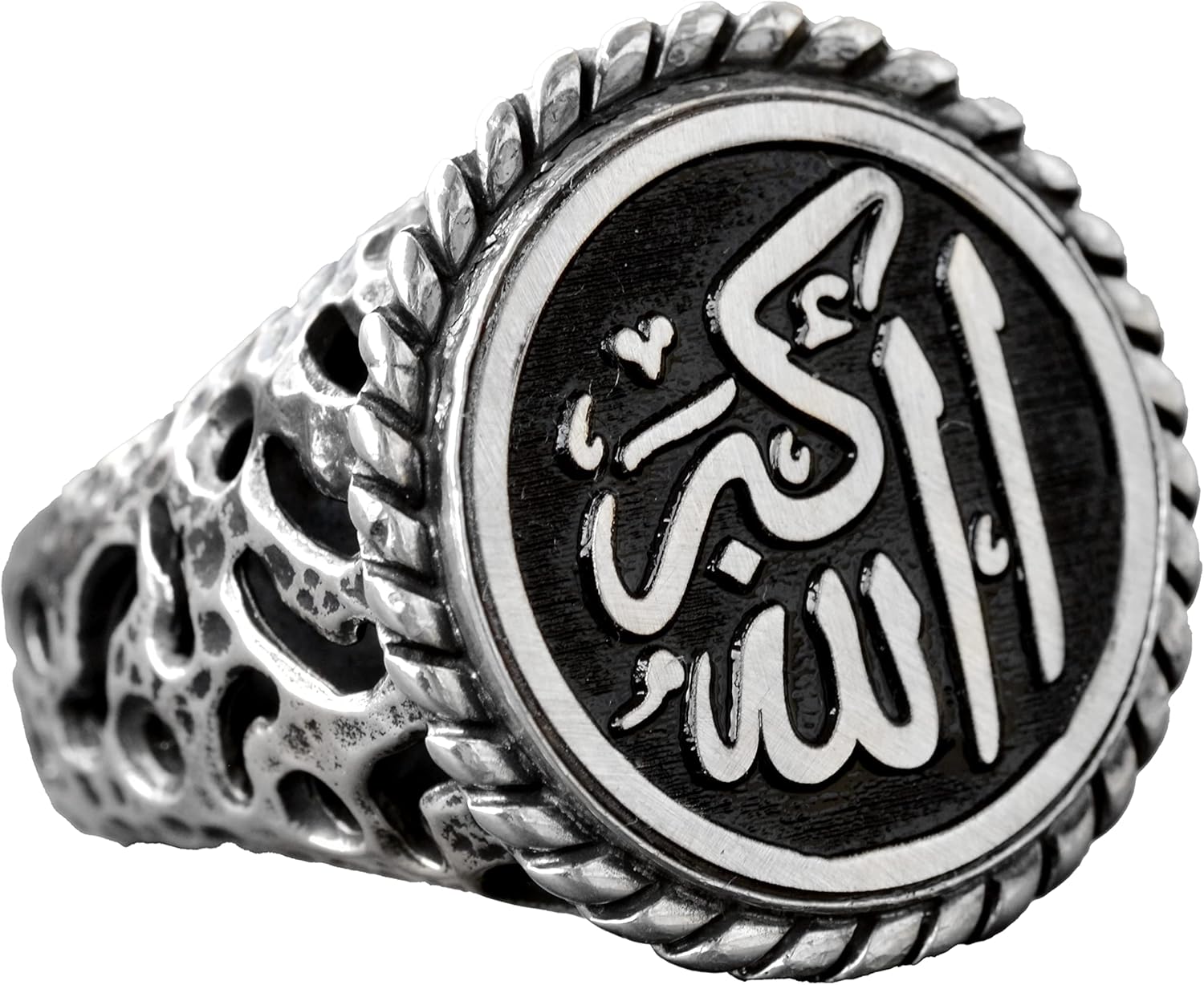 El Yapımı 925 Ayar Gümüş Erkek Yüzük - Ayrıntılı Dini Tasarım - İslami Yüzük