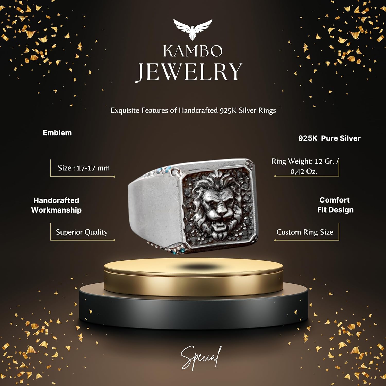 El Yapımı 925 Ayar Gümüş Erkek Aslan Yüzük - Cesur ve Güçlü Tasarım