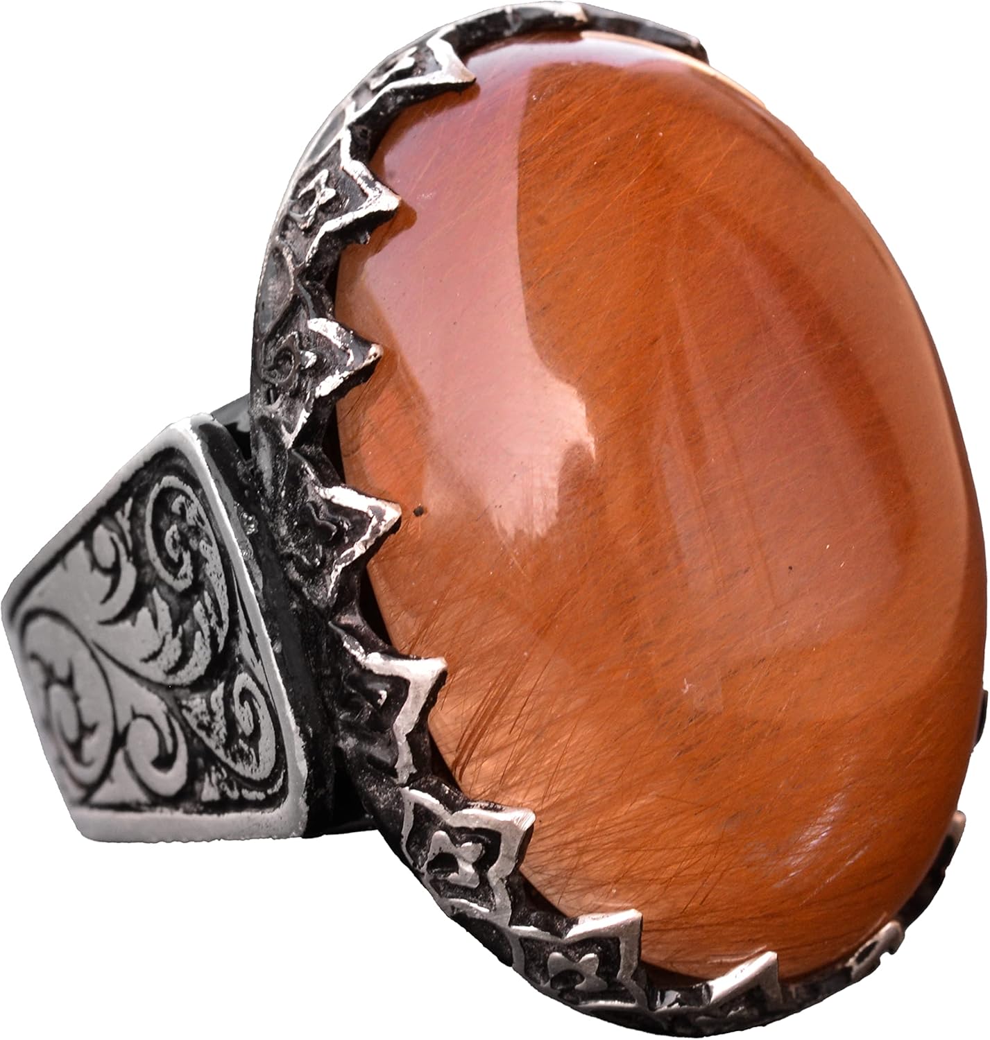 El yapımı 925 Ayar Gümüş Erkek Yüzük, Gerçek Altın Rutillit Kuvars Taşı, Şık Taş Koleksiyonu