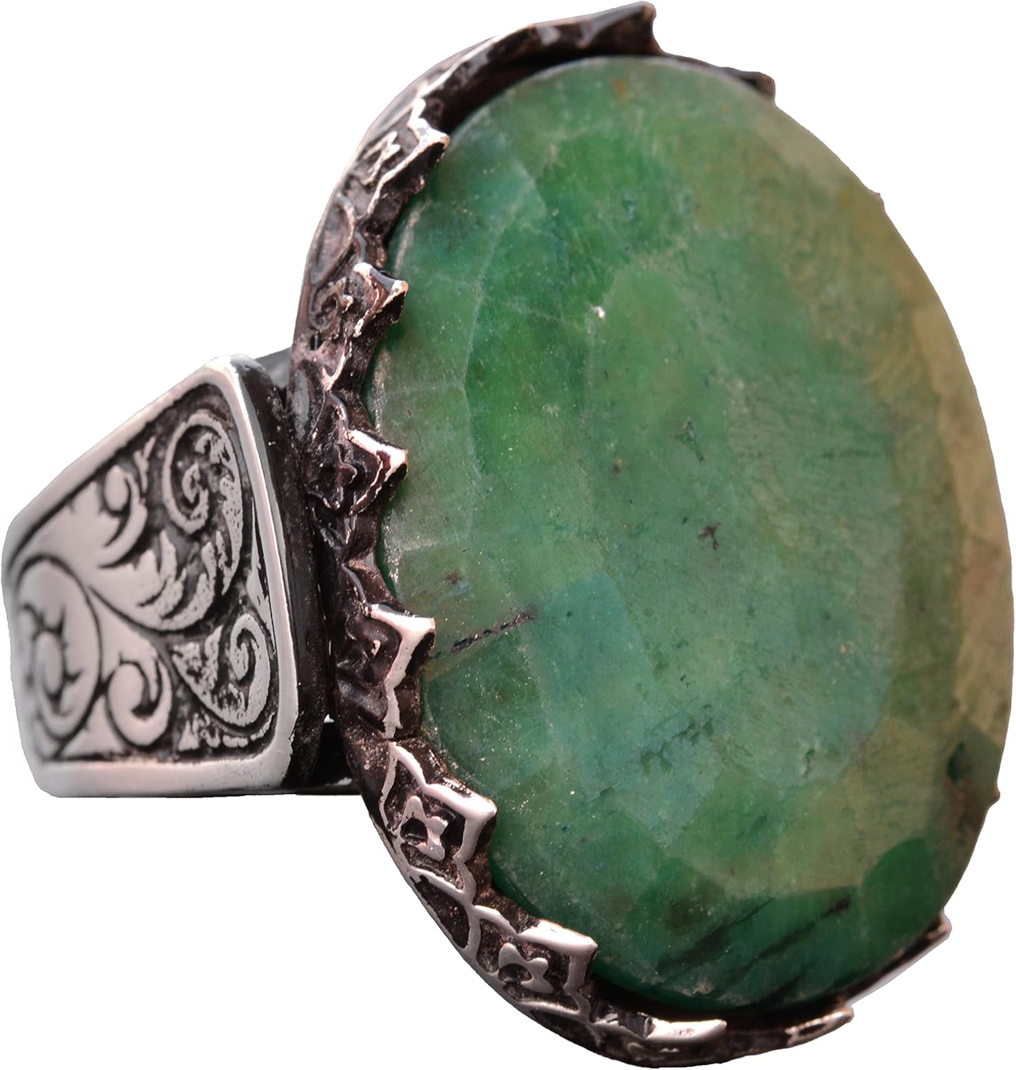 El Yapımı 925 Ayar Gümüş Erkek Yüzük, Gerçek Zümrüt Taşı, Şık Taş Koleksiyonu