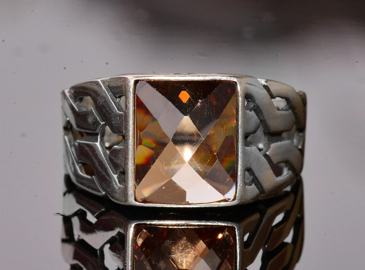 El Yapımı 925 Ayar Gümüş Erkek Yüzük, Sitrin Taşı, Yunan Aztek Minimalist Tasarım, Erkek Takısı