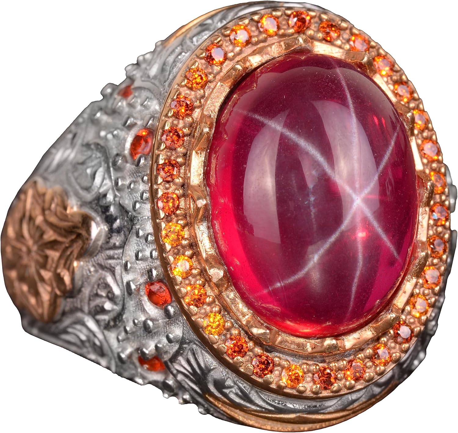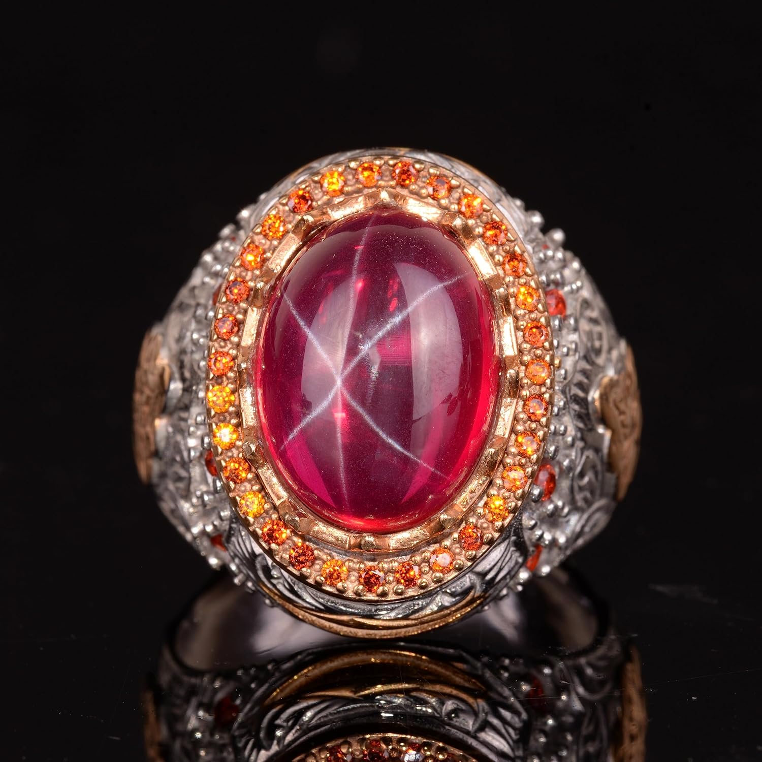 El yapımı 925 Ayar Gümüş Kral Yüzük, Gerçek Yıldız Yakut Taş - Erkekler için Şık Doğal Taş Takı