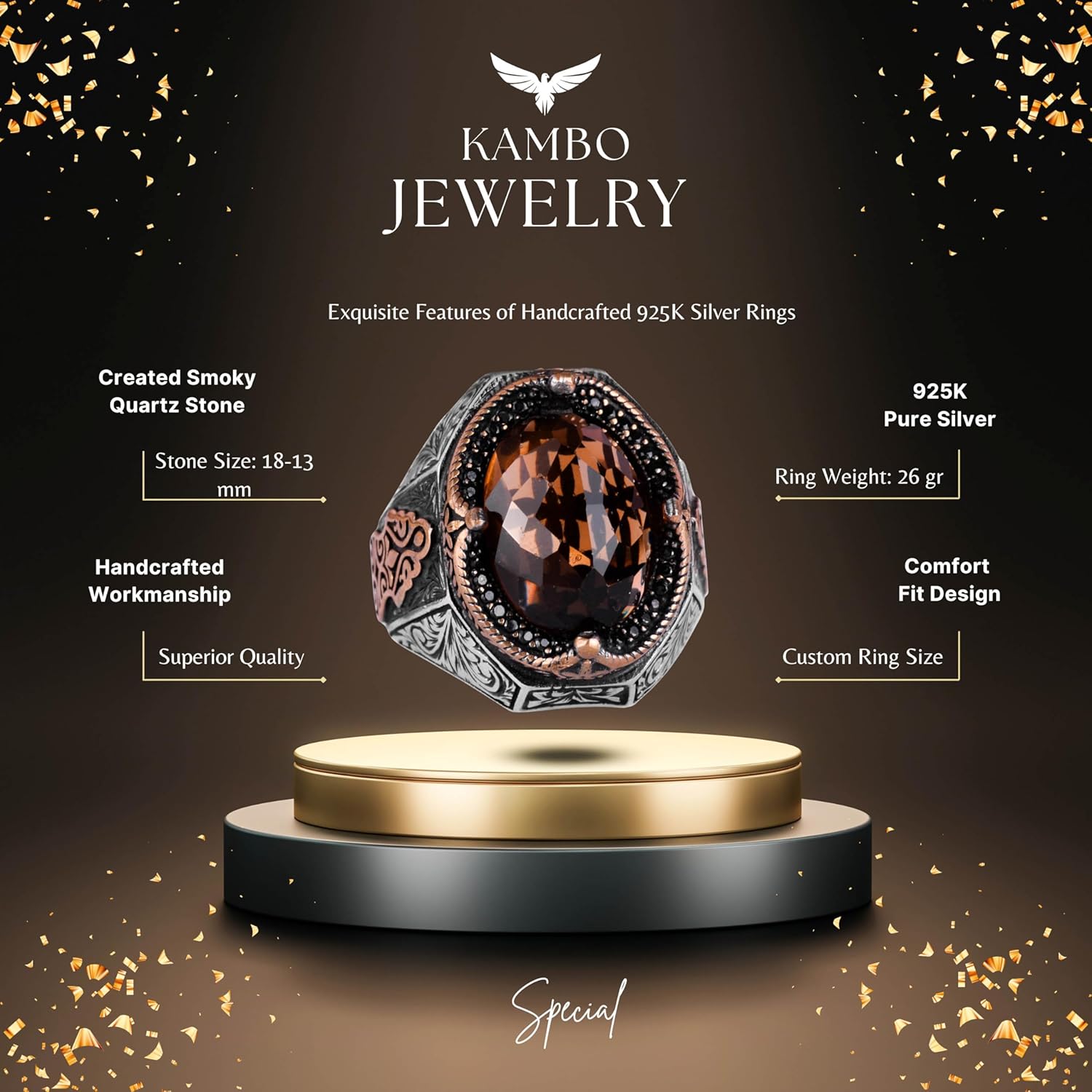 El yapımı 925 Ayar Gümüş Yüzük, Dumanlı Kuvars Yapay Taş Yüzük - Çeşitli ve Şık Koleksiyon