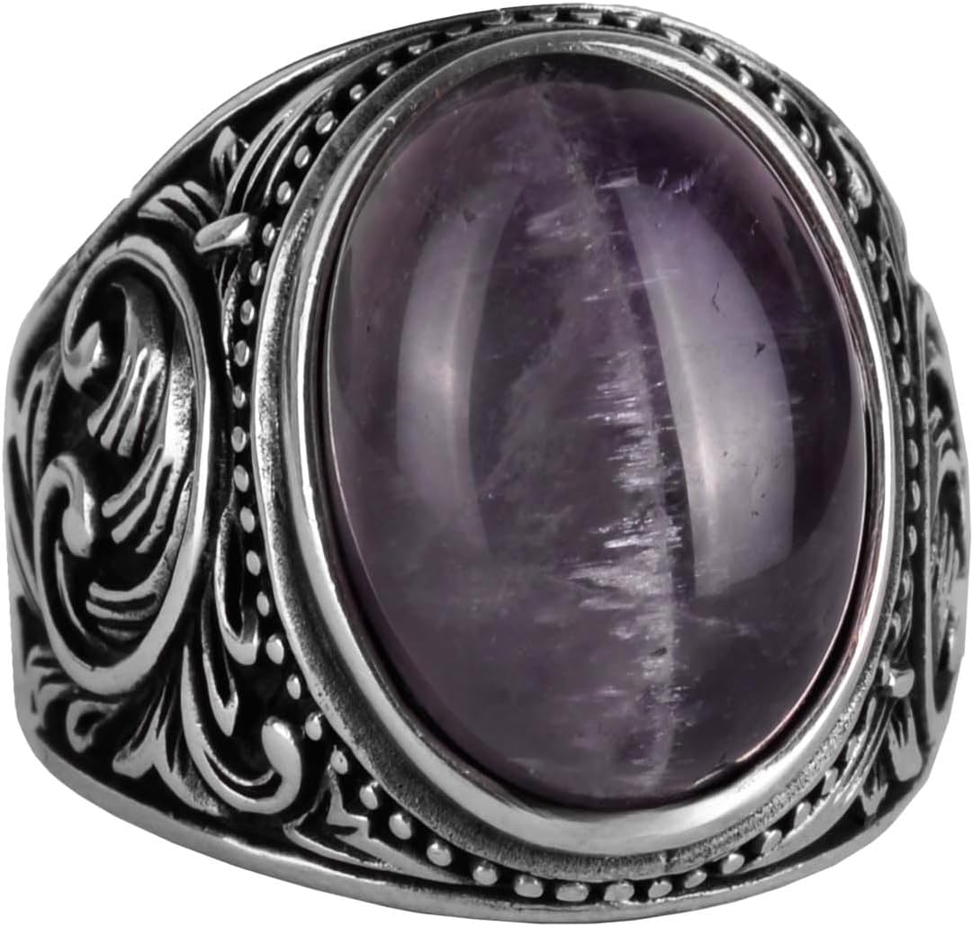 El Yapımı Doğal Ametist Taş Yüzük - Spiritüel 925 Ayar Katı Gümüş Erkek Yüzük - Sezgi ve Koruma Tasarımı