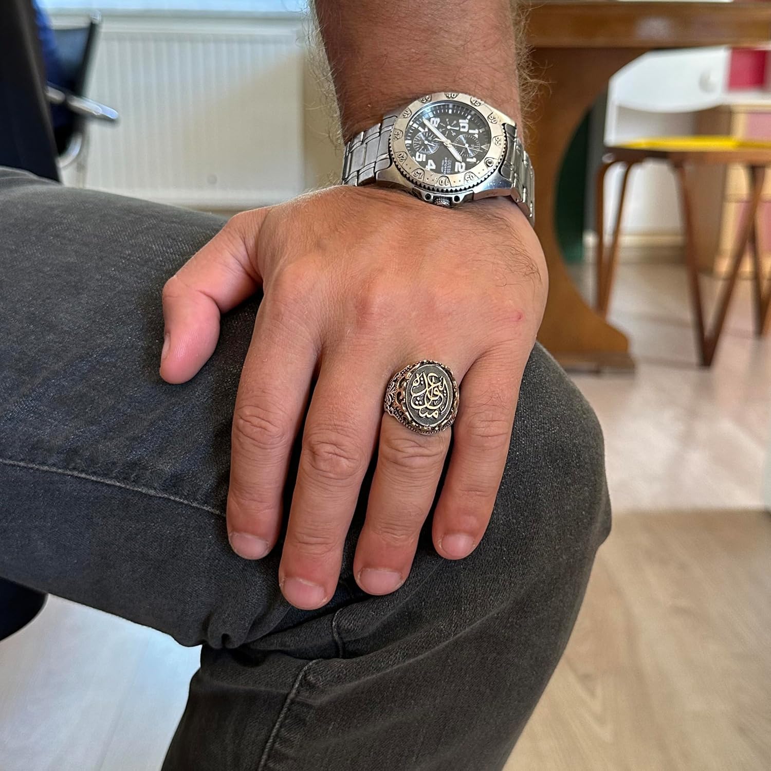 El Yapımı Dini Takı Erkekler İçin, 925 Ayar Gümüş Yüzük, Sembol Yüzük (Model-4)