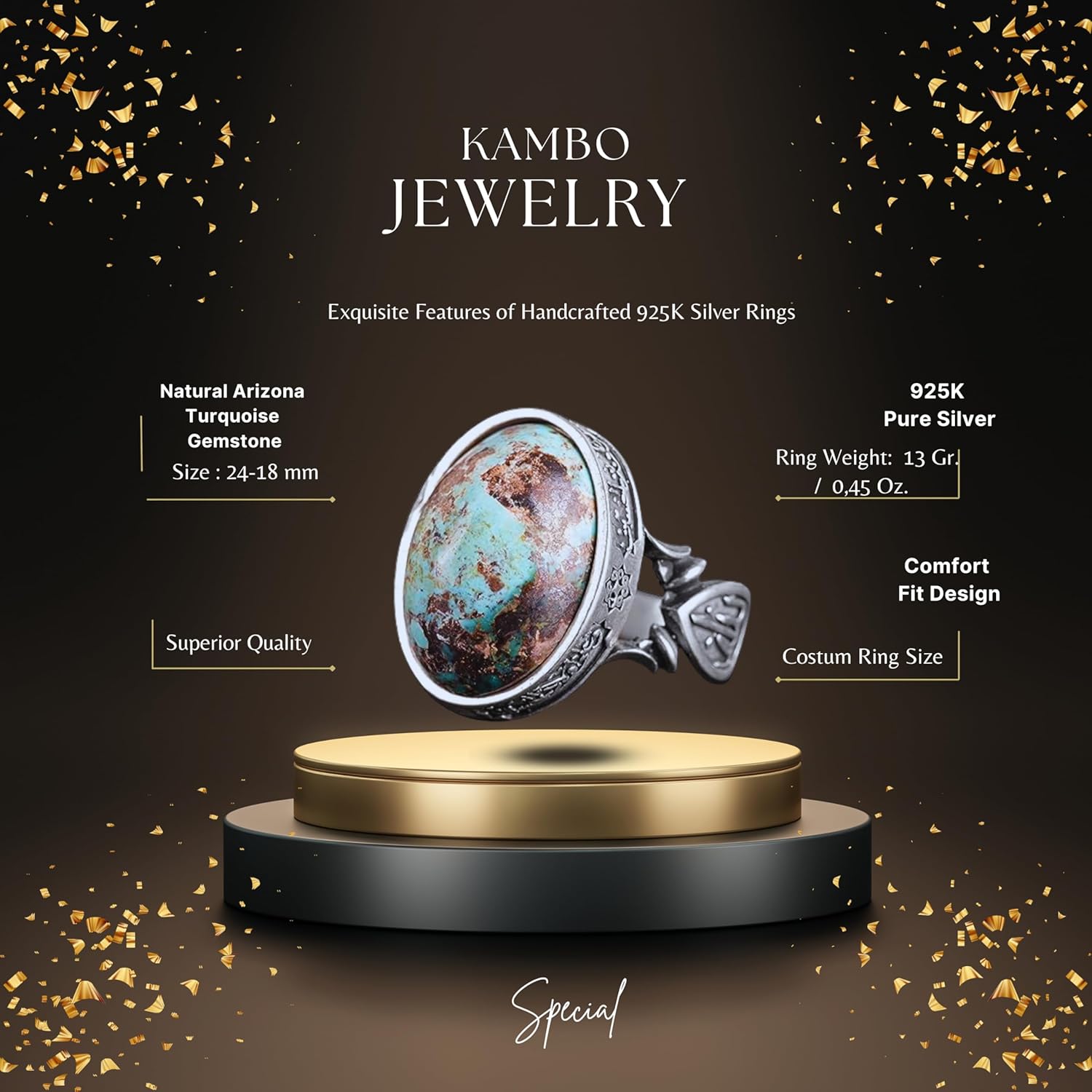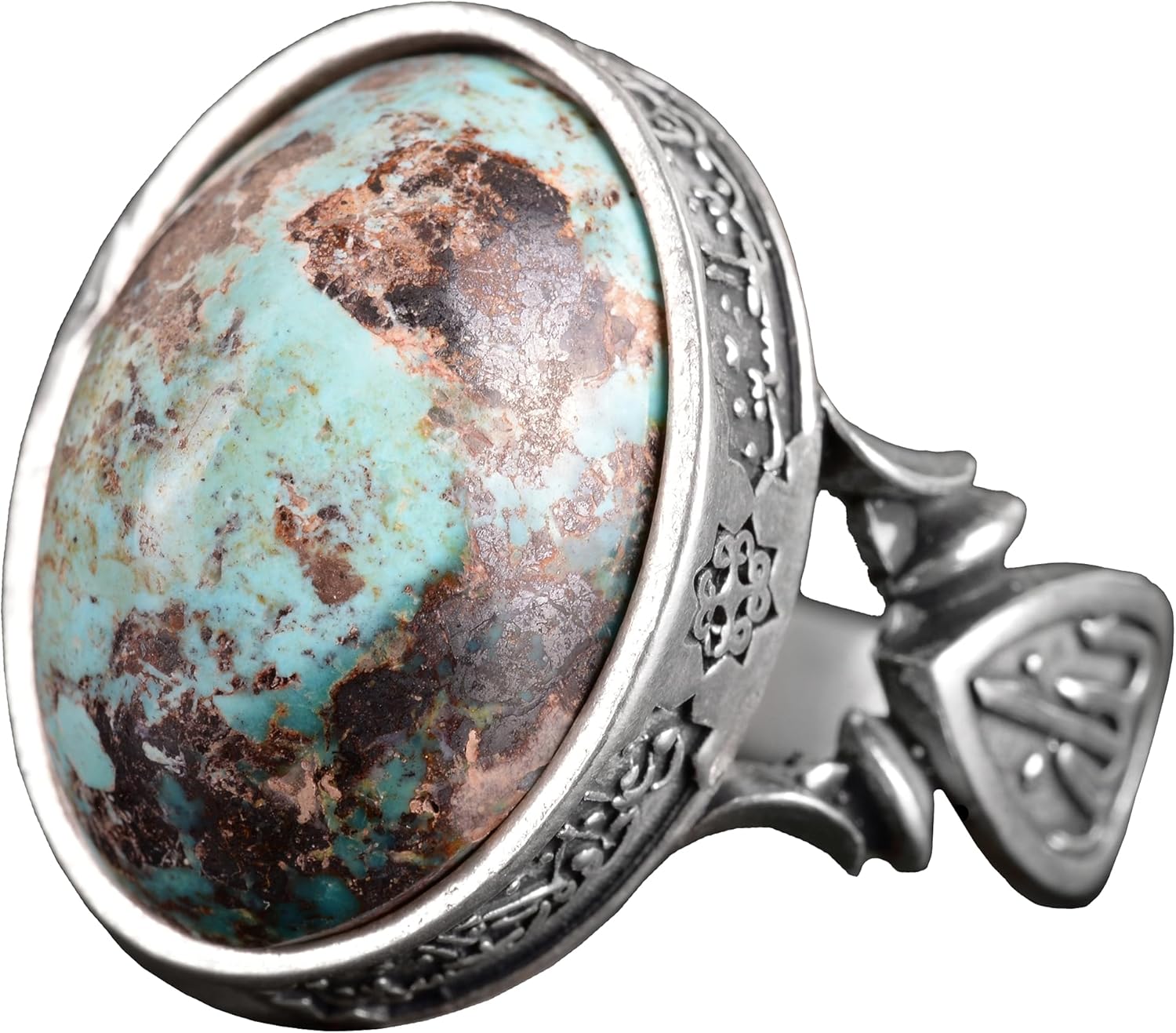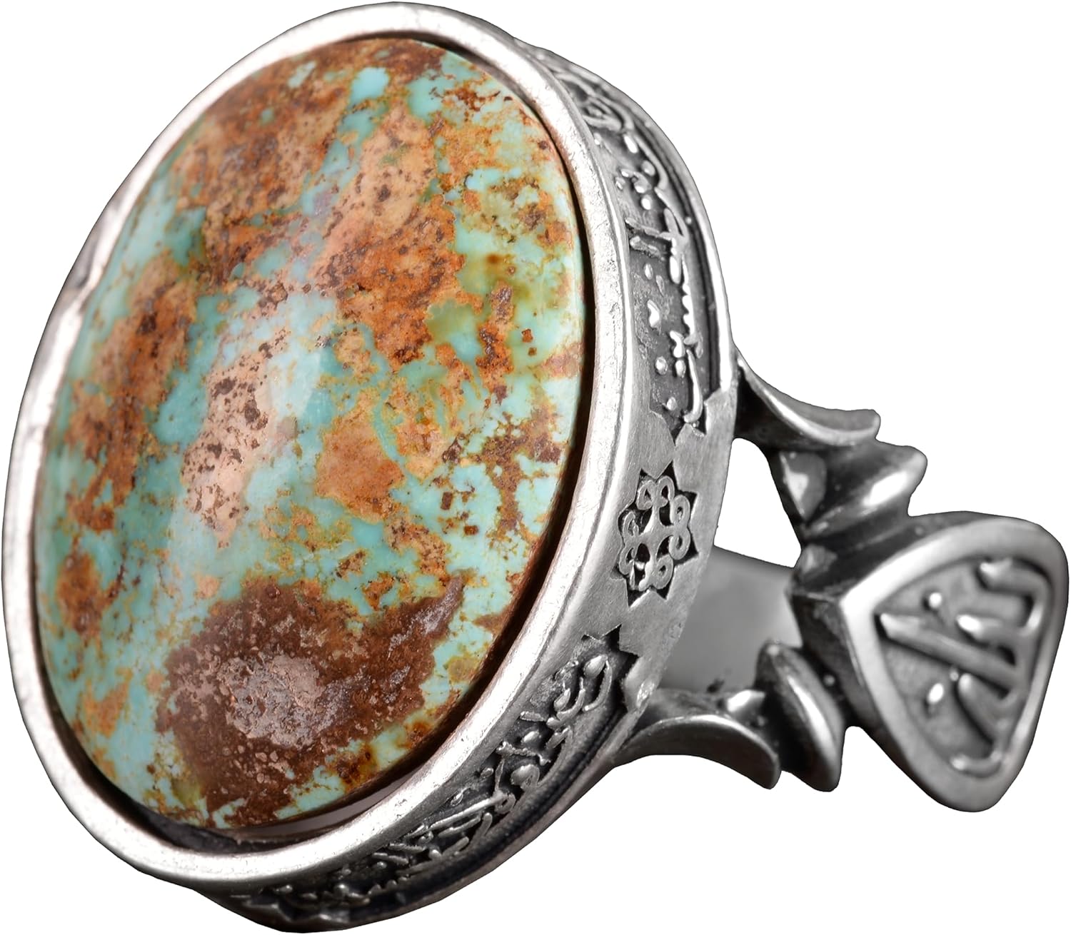 El yapımı Doğal Arizona Turkuaz Taşlı Yüzük - 925 Ayar Gümüş İslami Yüzük Erkekler İçin - Özel Yüzük