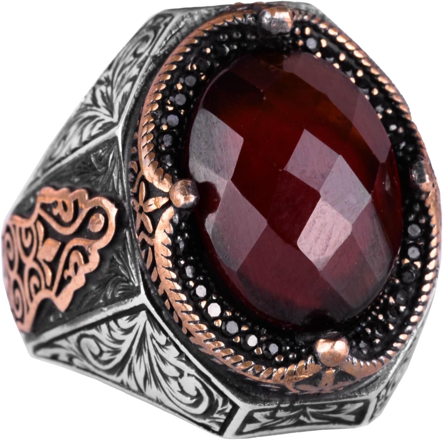 El Yapımı Doğal Granat Taşlı Yüzük - Derin 925K Katı Gümüş Erkek Yüzüğü