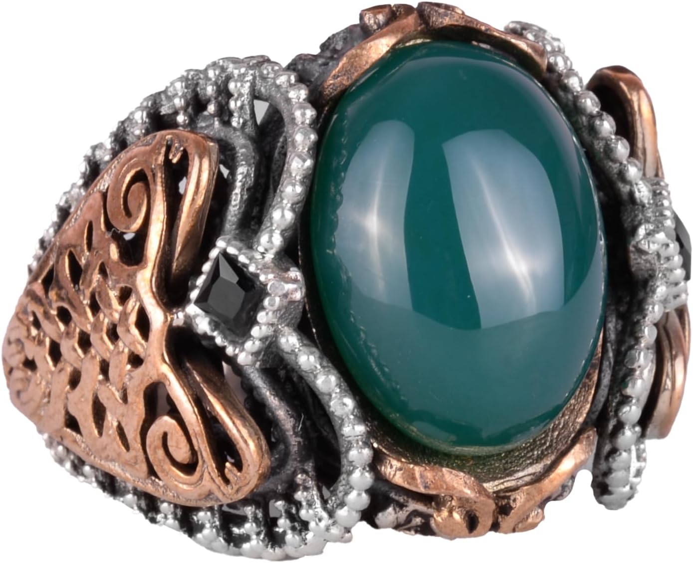 El Yapımı Doğal Cabochon Zümrüt Taşlı Yüzük, 925 Ayar Katı Gümüş Erkek Yüzük