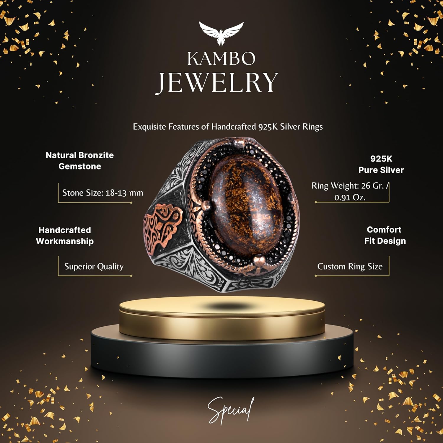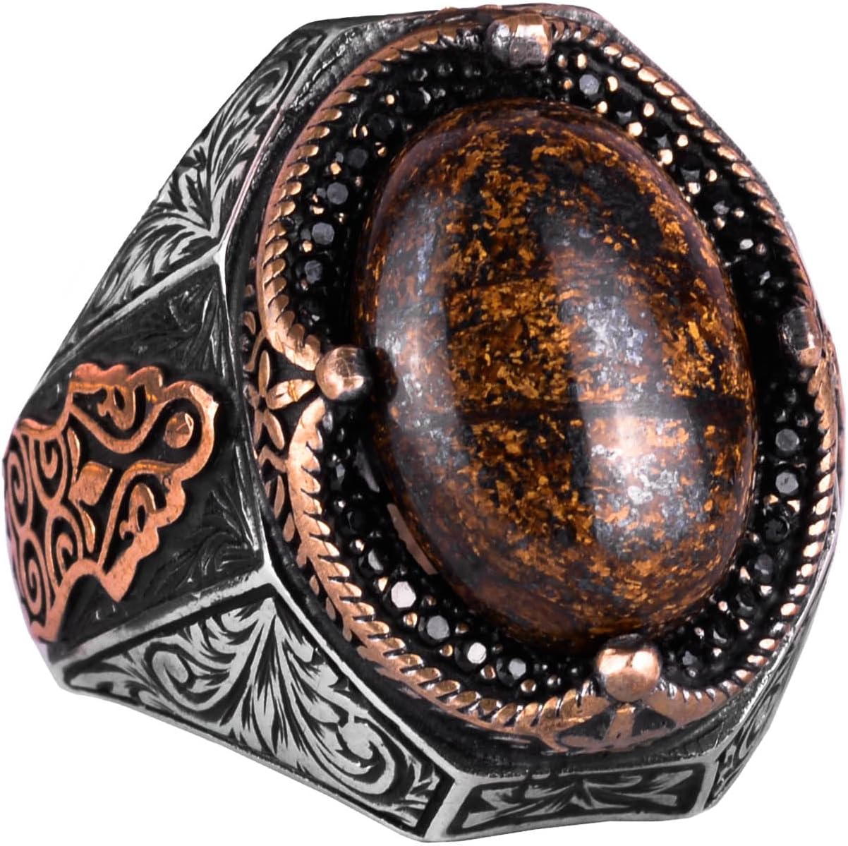 El Yapımı Doğal Bronzit Taş Yüzük - Cesur 925 Ayar Katı Gümüş Erkek Yüzüğü, Topraklama Gücü Tasarımı