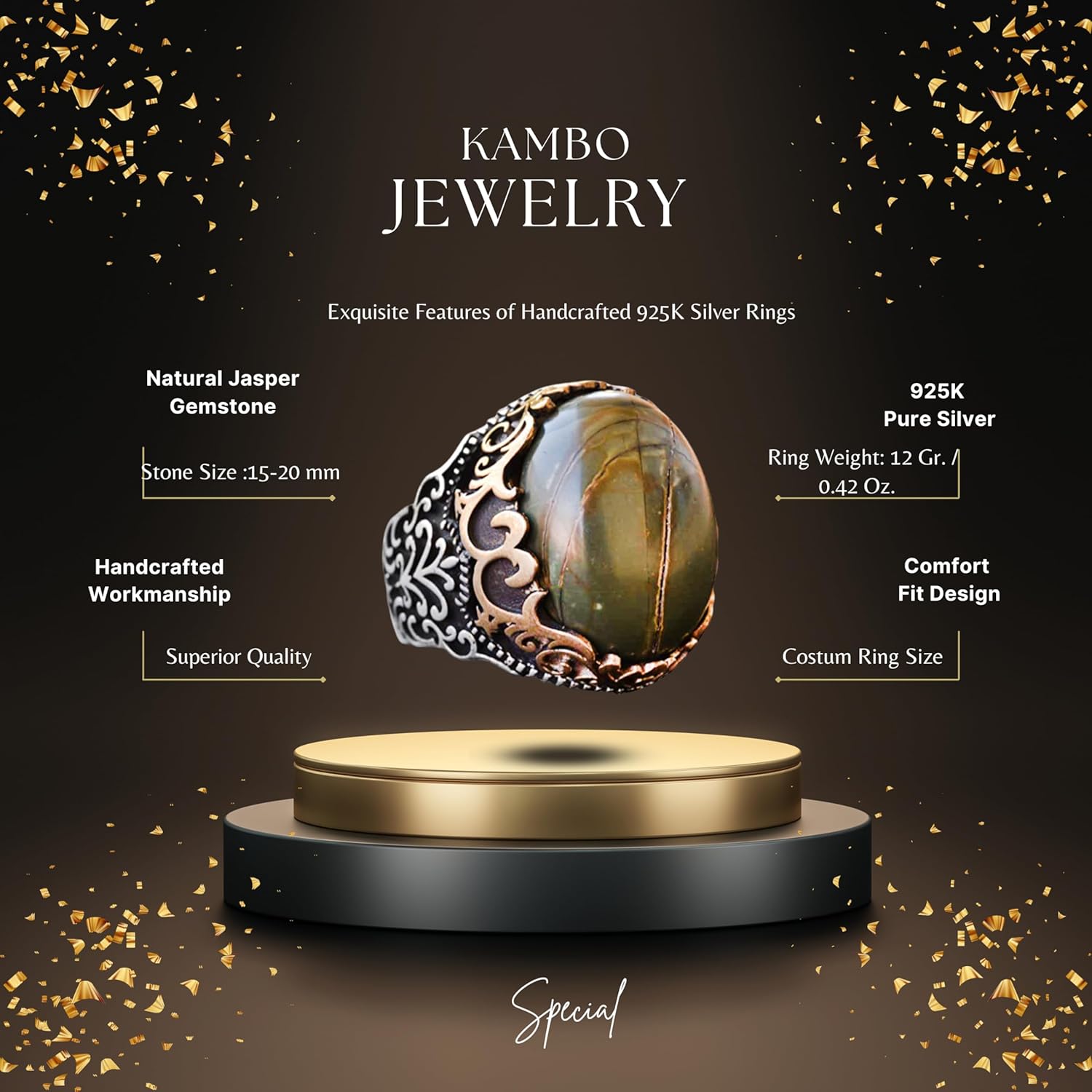 El Yapımı Doğal Jasper Yüzük | 925 Ayar Gümüş Erkek Yüzük | Topraklama ve Denge Tasarımı
