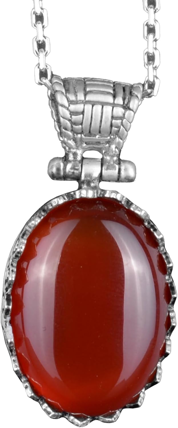 Gerçek Doğal Taş Kolye - 925 Ayar Gümüş Kolye (Kırmızı Akik)
