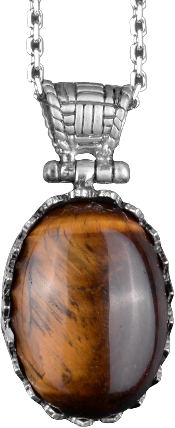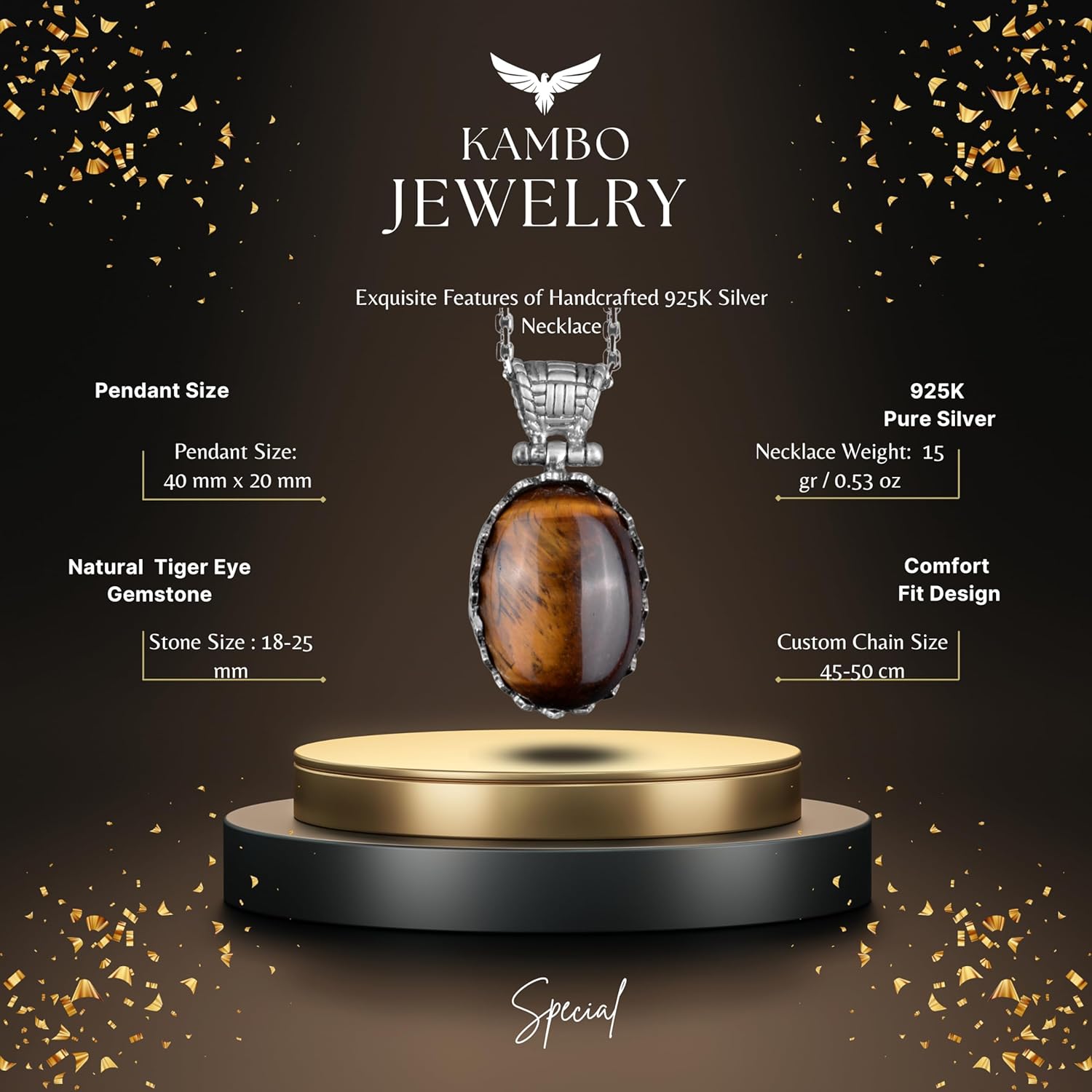 Doğal Taş Kolye - 925 Ayar Gümüş Kolye (Kaplan Gözü)