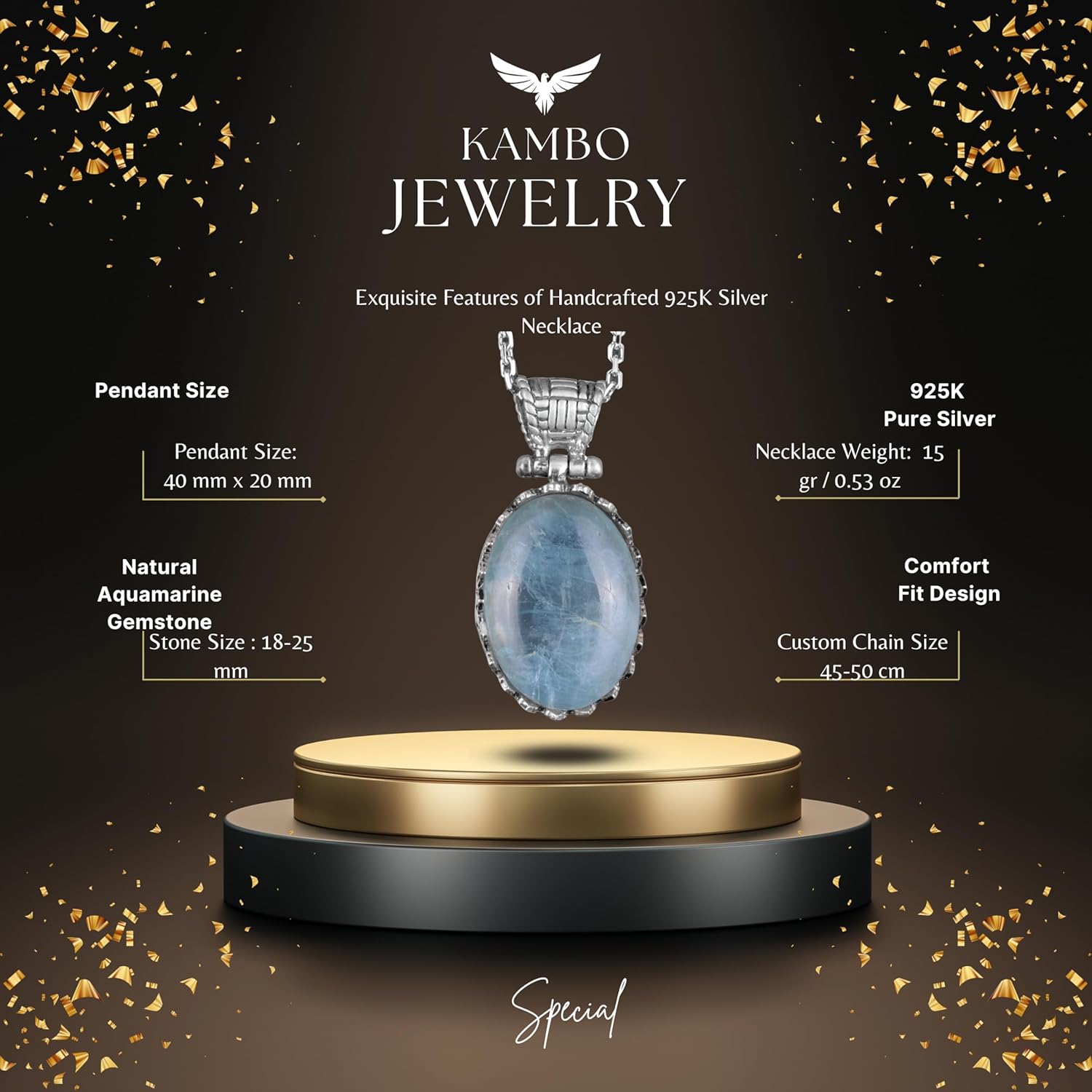 Gerçek Doğal Taş Kolye - 925 Ayar Gümüş Kolye (Akvamarin)